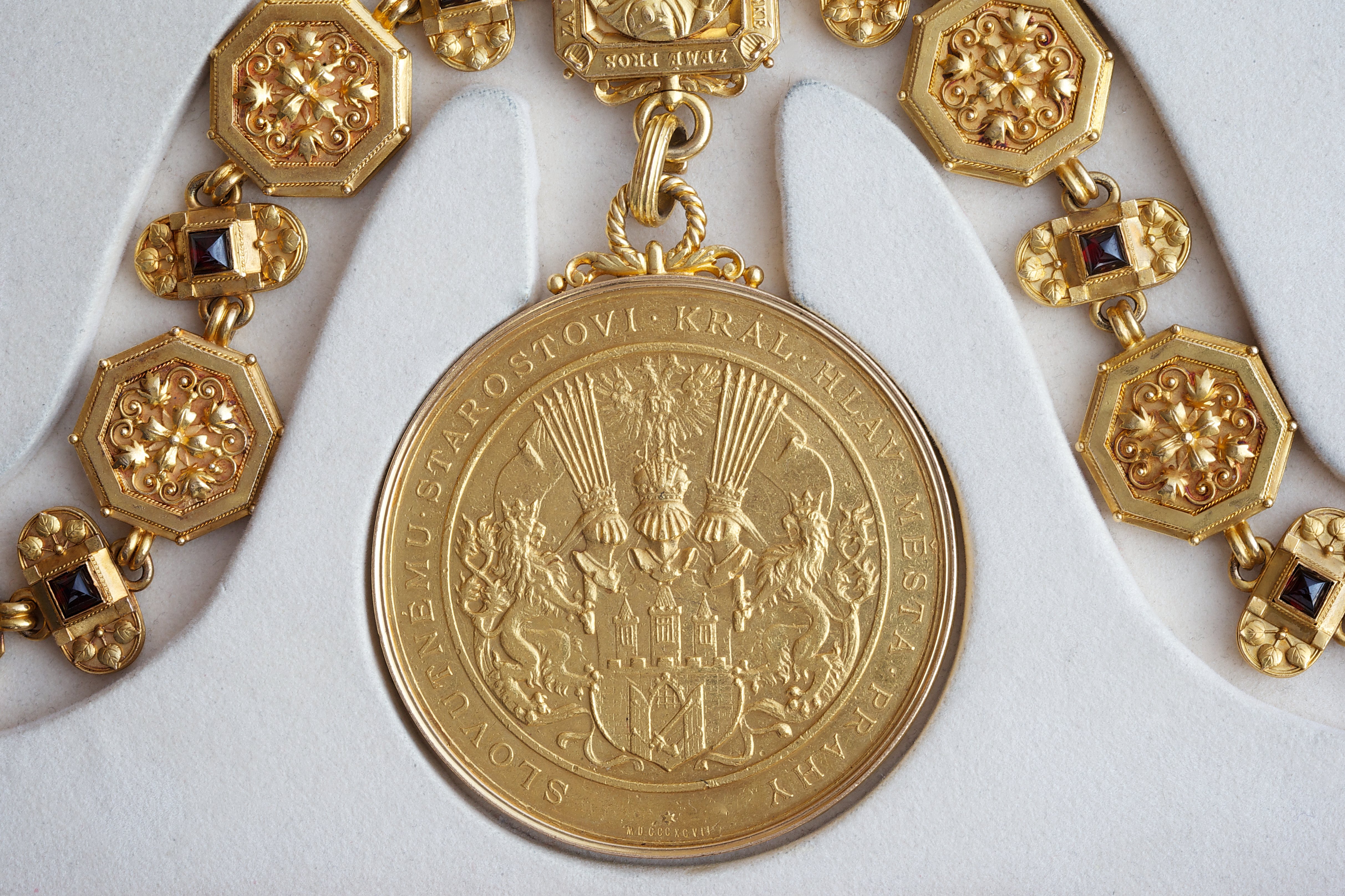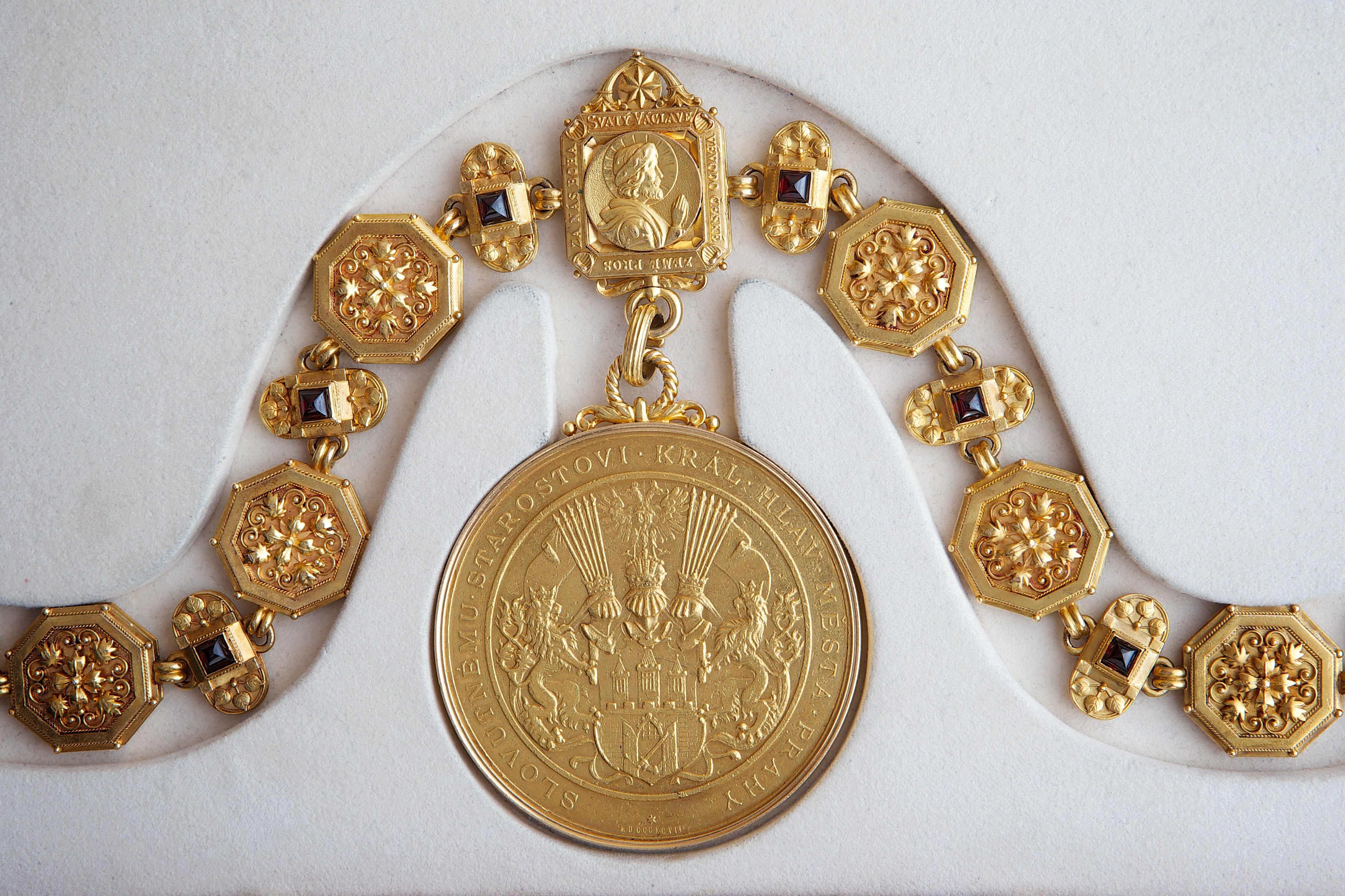 Řetěz primátora hlavního města Prahy s medailí je z ryzího zlata a skládá se ze dvou částí: