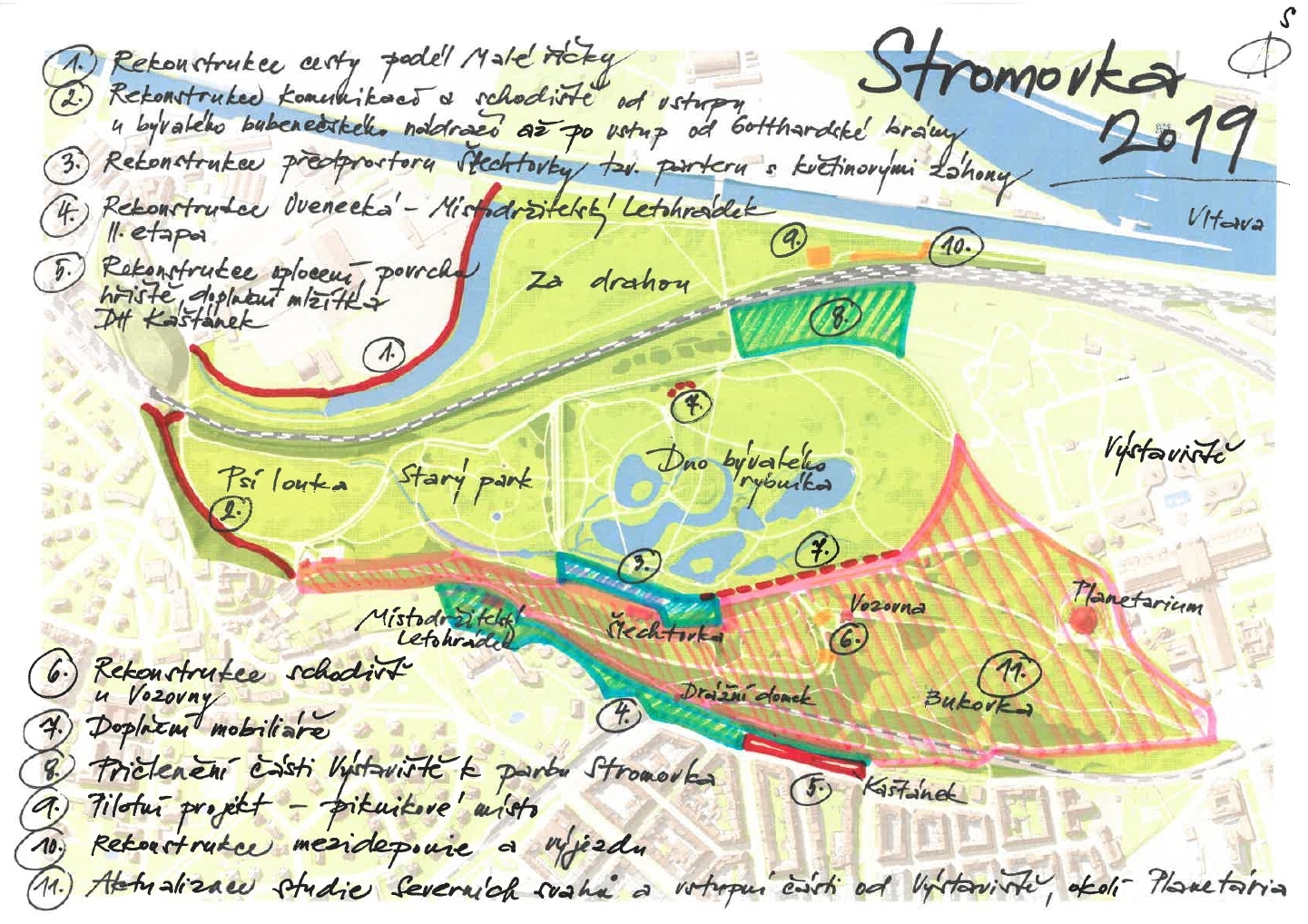 Stromovka, orientační mapa, stav 12/2018