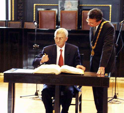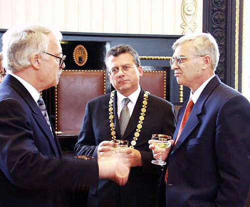 přijetí na radnici1.jpg (Foto - Primátor Jan Kasl požádal vzácného hosta o podpis do Zlaté knihy města Prahy...)