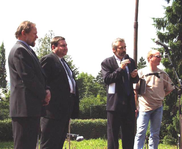 p6260028.jpg (FOTO - Dnes byla v Jedličkově ústavu velká slavnost, které se zúčastnil i náměstek primátora Otto Kechner (uprostřed), vpravo ředitel JÚŠ Jan Pičman, vlevo předseda Nadace JÚŠ František Toms)