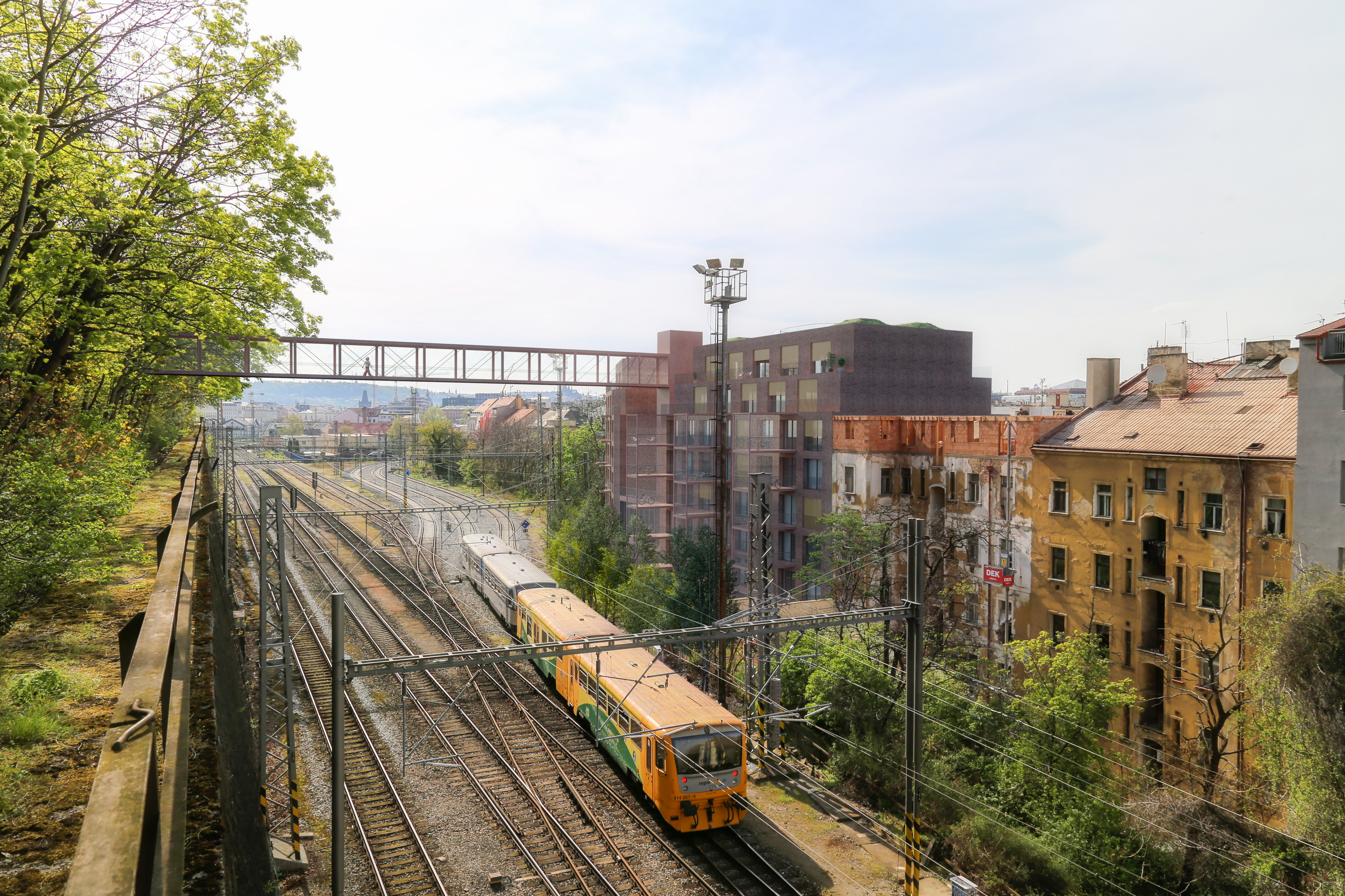Z Karlína bude pohodlnější přístup do parku na Vítkově. Nová bezbariérová lávka překlene železniční trať z Pernerovy ulice přes nový bytový dům a umožní pohodlnější cestu pro pěší na Vítkov a dále na Žižkov.