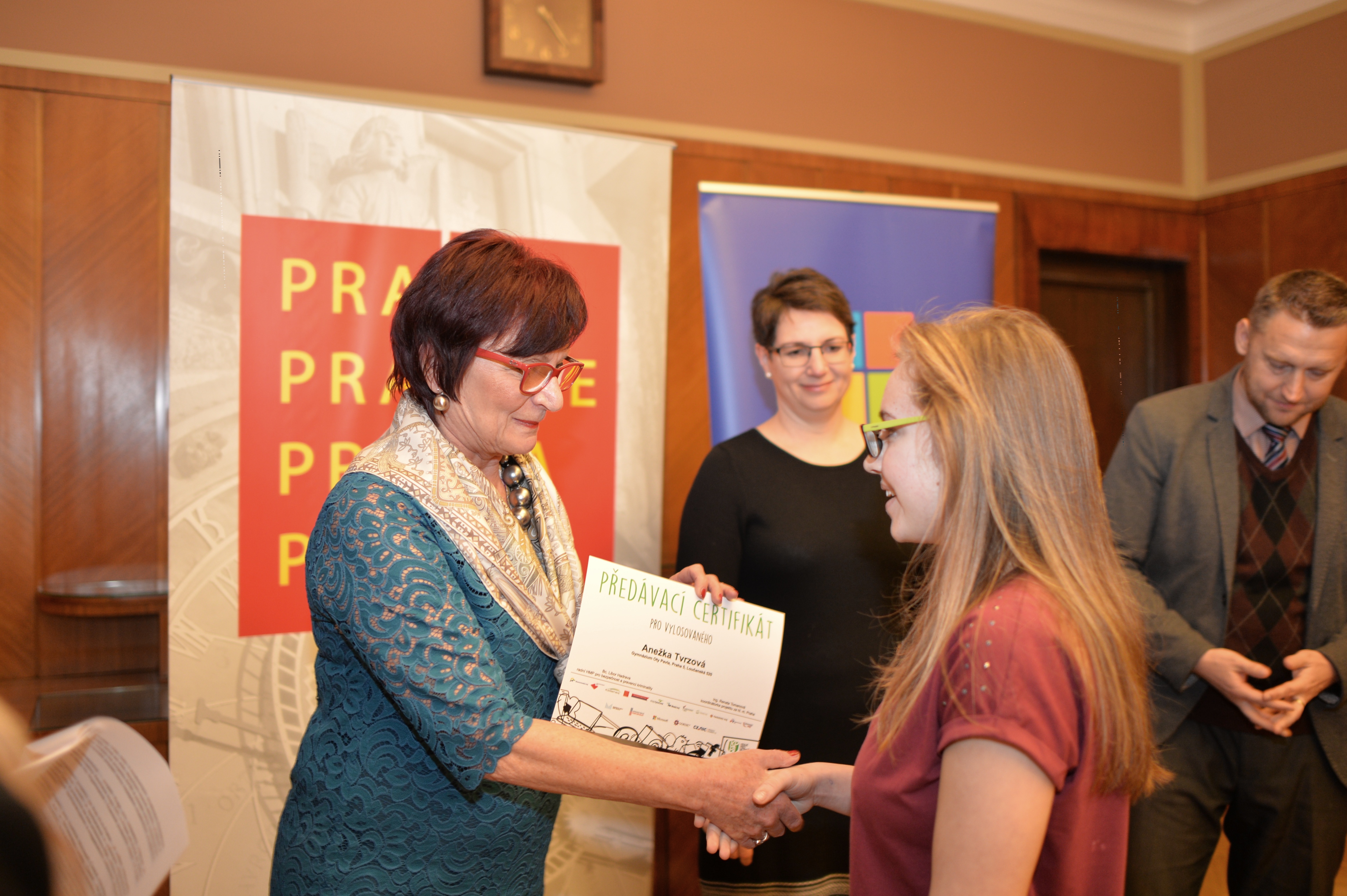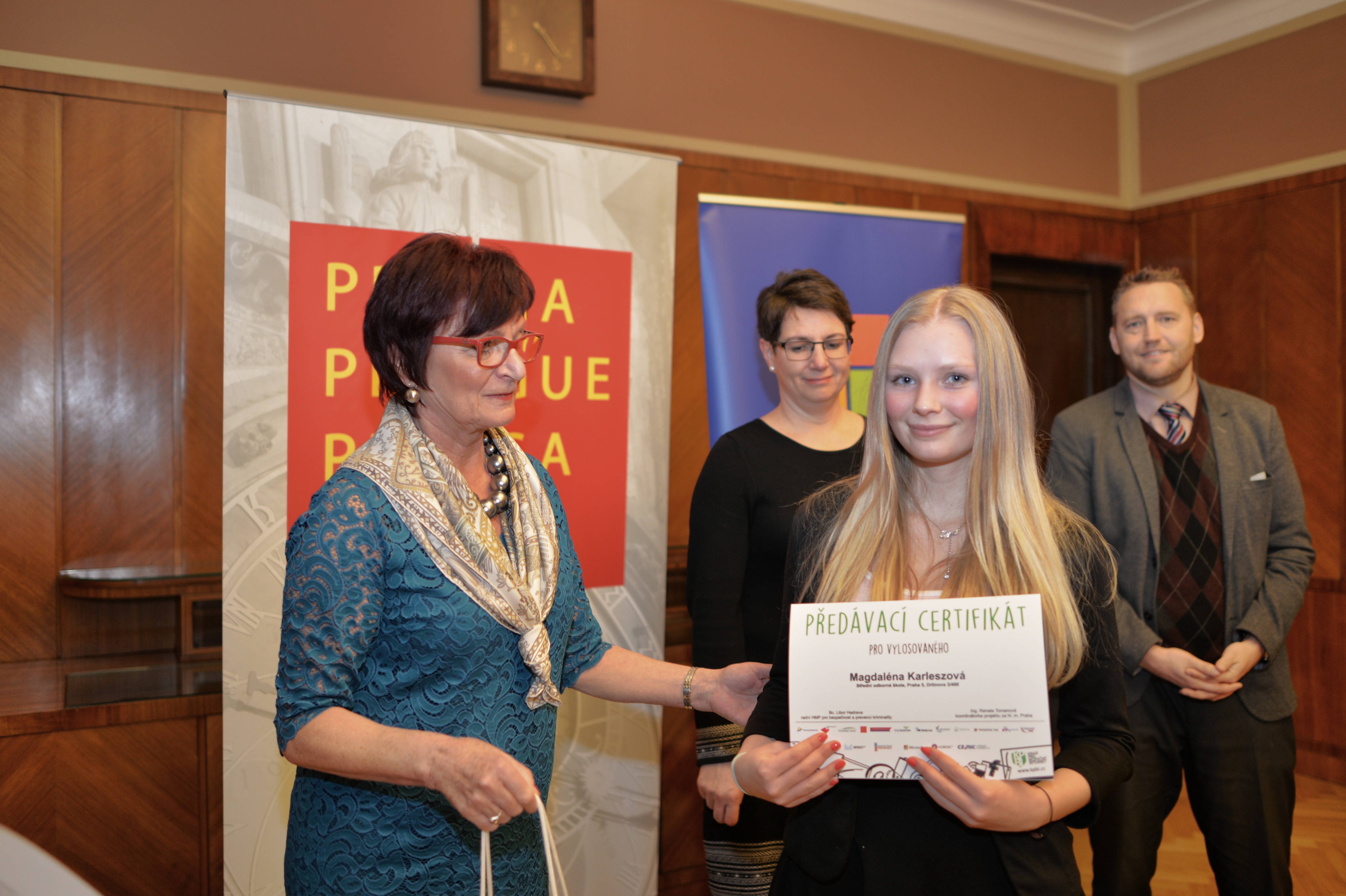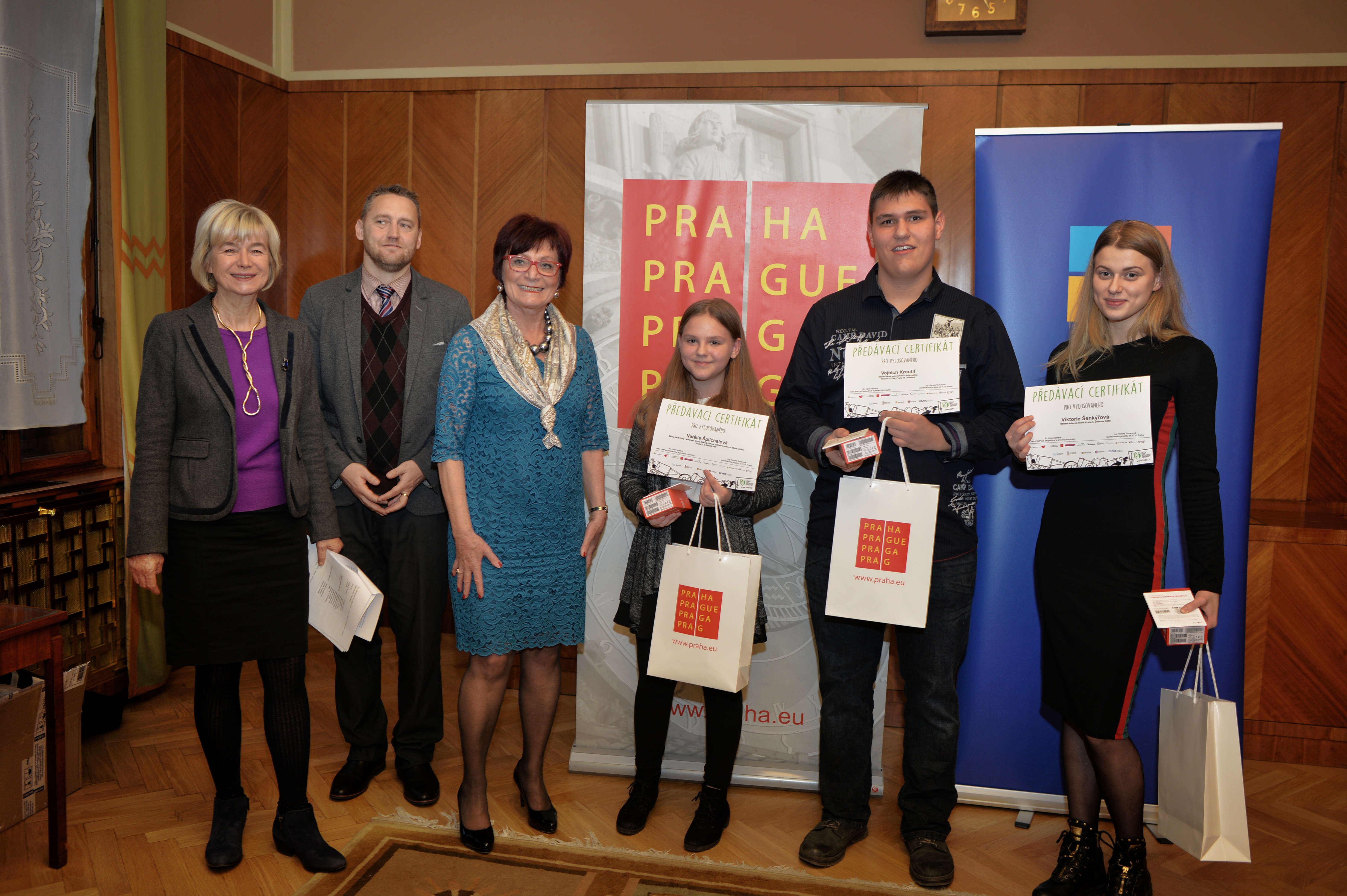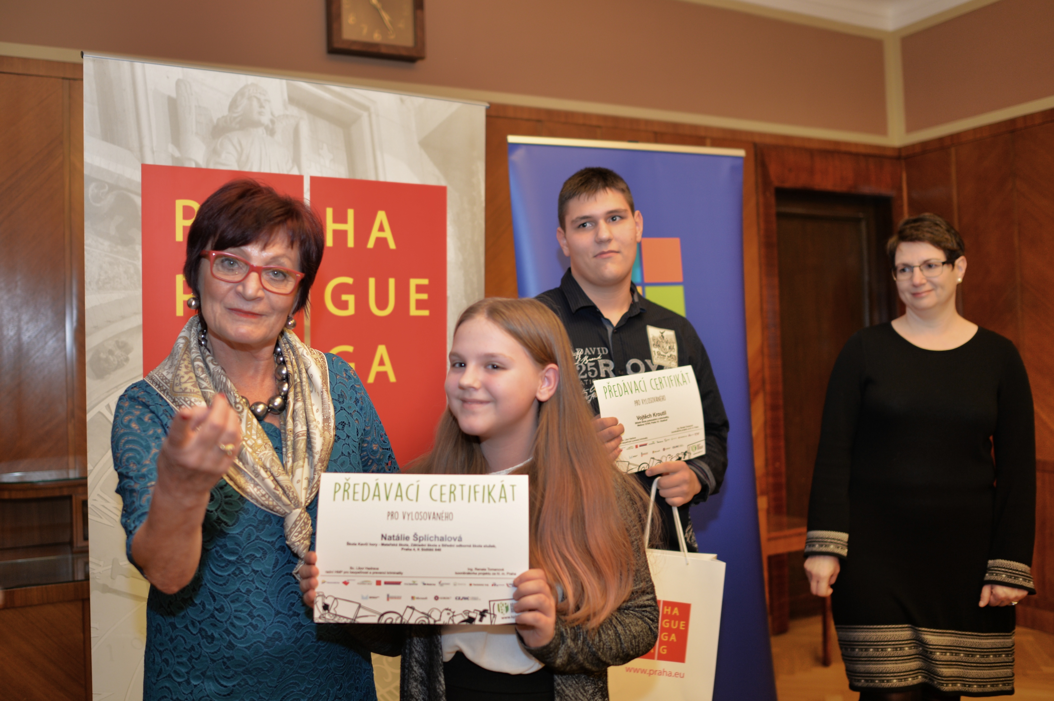 Celkem 1 428 žáků a studentů ze 43 pražských základních a středních škol se v loňském roce účastnilo řešení kvízu v rámci projektu Kraje pro bezpečný internet, který je má poučit o možných rizicích internetu a také, jak se jim vyvarovat. Vylosované studenty a také tři nejrychlejší řešitele včera ocenila náměstkyně primátorky hl. m. Prahy Eva Kislingerová.