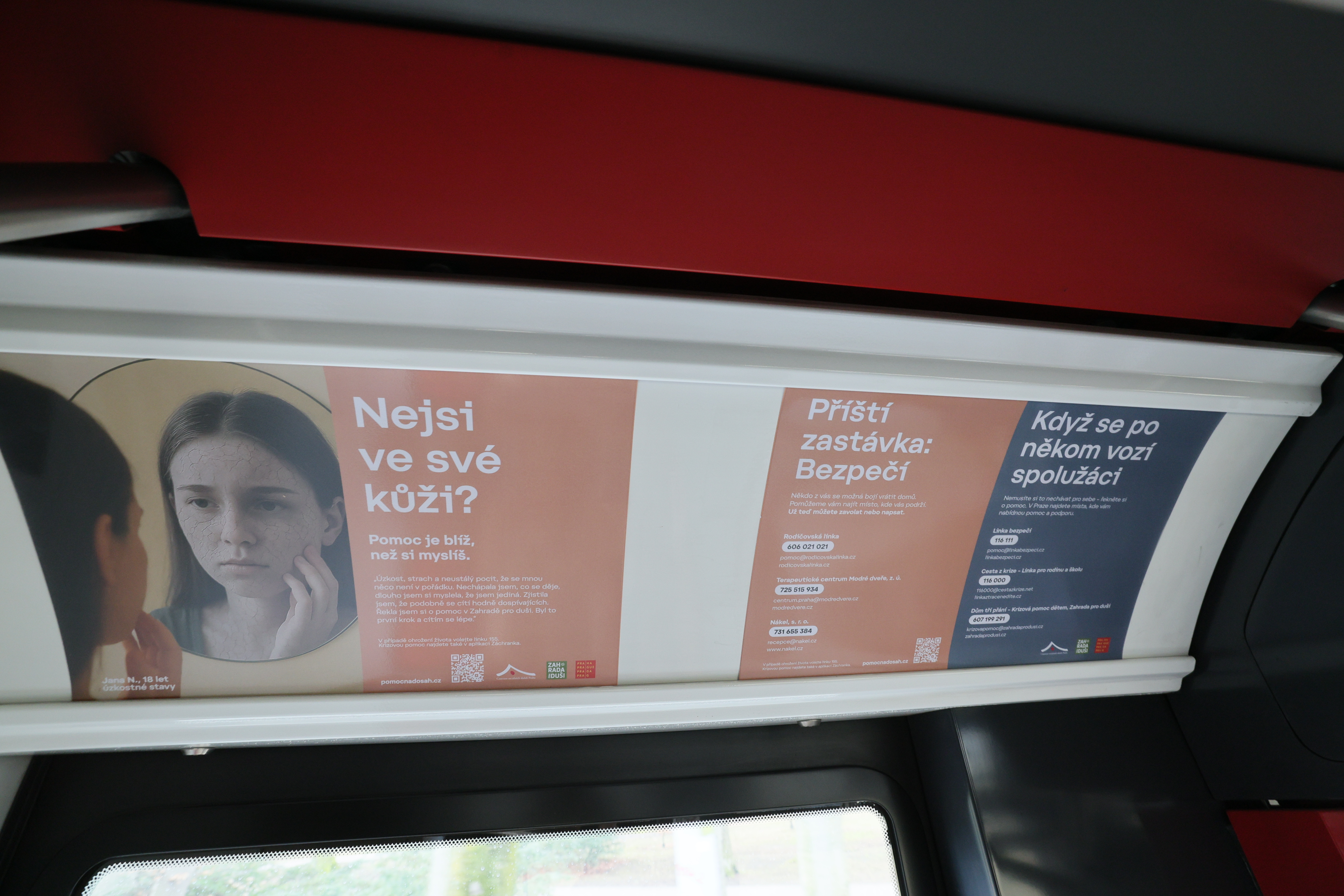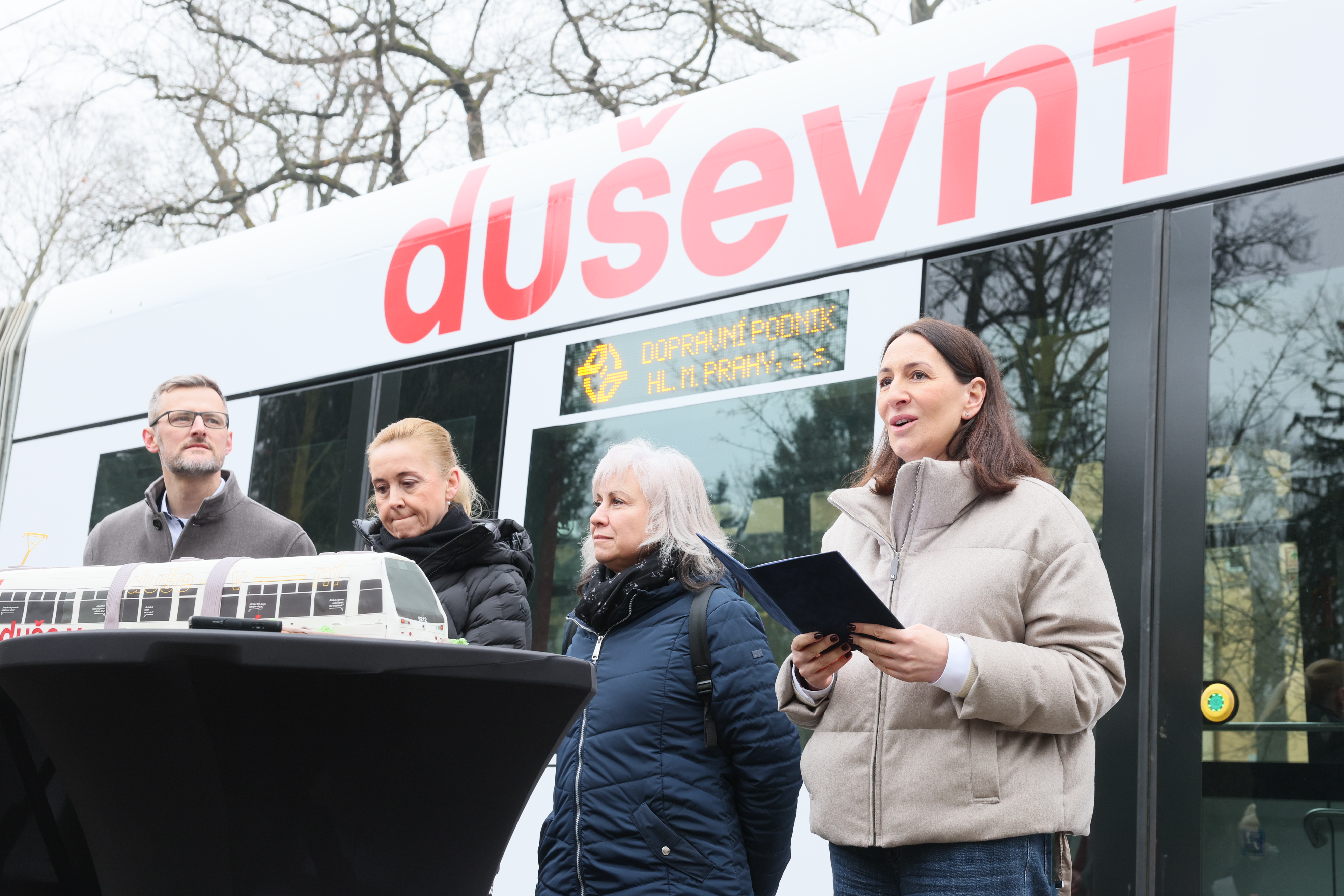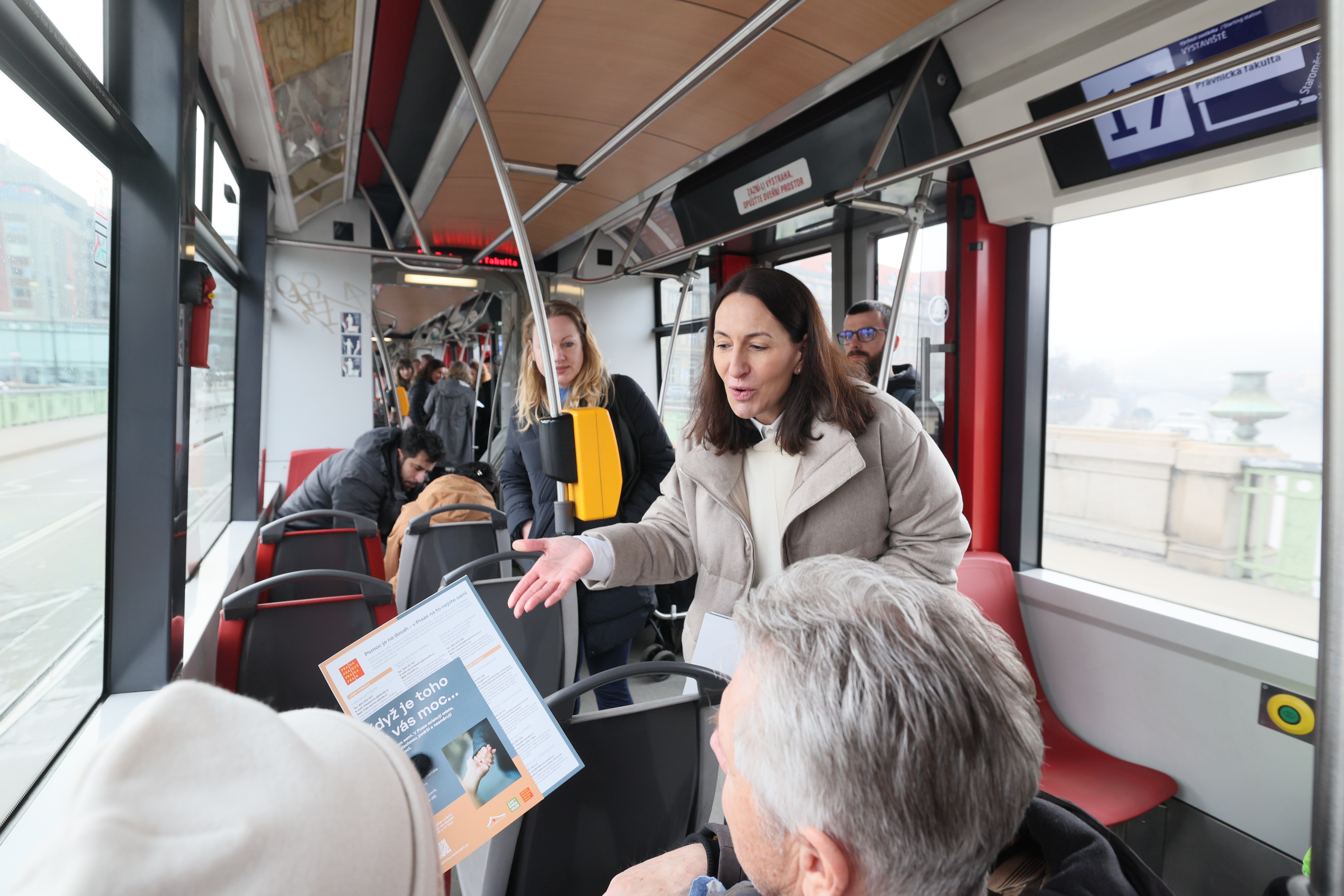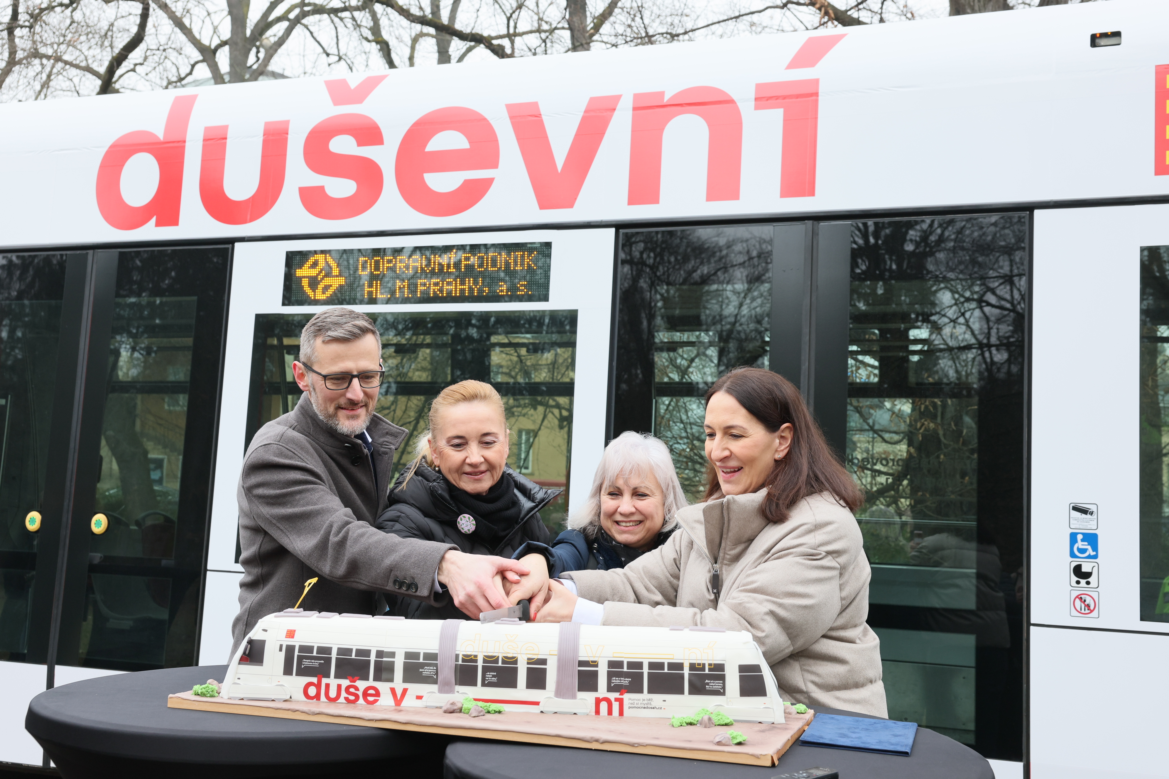 „Každý z nás, kdo nastoupí do tramvaje, si s sebou nese svůj vlastní příběh. Někdo jede vyčerpaný z práce, jiný se stará o dítě, které prochází náročným obdobím, někdo může prožívat poporodní depresi, panické ataky nebo vyhoření. A třeba vedle nás sedí senior, který se po ztrátě partnera cítí osamělý a neví, na koho se obrátit. Bolavé duše většinou nejsou na první pohled vidět, ale zaslouží si stejnou péči jako naše fyzické zdraví. Právě proto jsme chtěli, aby tato tramvaj lidem ukázala, že v Praze existuje skutečná a dostupná síť pomoci – pro děti, rodiče, seniory a každého, kdo se ocitl v těžké životní situaci nebo prochází obdobím, kdy už toho nese víc, než dokáže sám zvládnout. Prostě, pokud cítíte, že toho na vás je příliš, řekněte si o pomoc. Podívejte se na uvedené kontakty, zavolejte, napište. Pomoc je na dosah a je v pořádku si o ni říct,“ říká náměstkyně primátora hl. m. Prahy pro oblast sociálních věcí a zdravotnictví Alexandra Udženija.