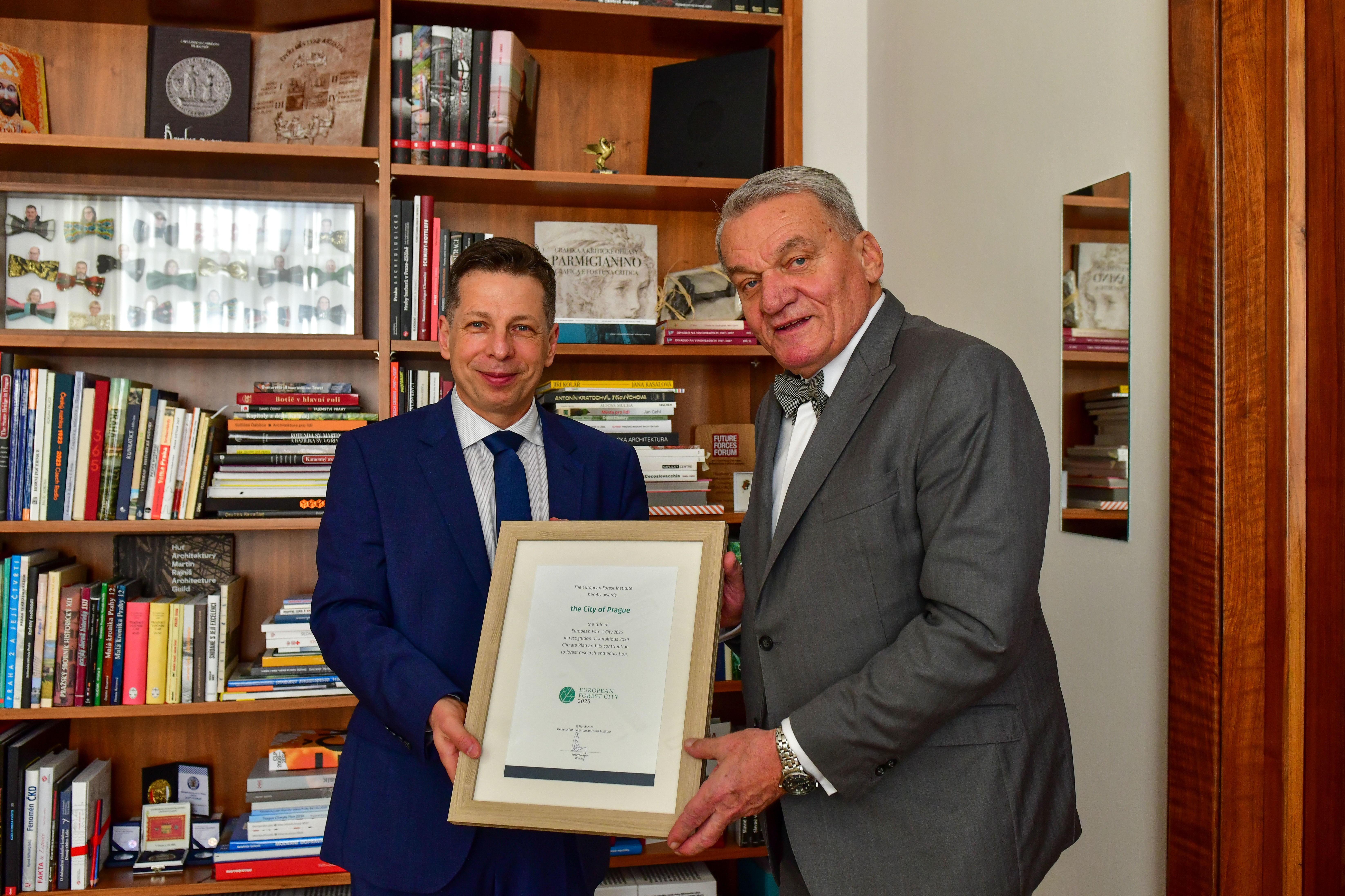 V pátek převzal primátor hl. m. Prahy Bohuslav Svoboda titul Evropské město lesnictví 2025 od ředitele Evropského lesnického institutu Roberta Mavsara. Hlavní město bude v letošním roce zároveň hostit výroční konferenci EFI 2025, na níž se setkají vědci, odborníci, politici a další lidé věnující se lesnictví a přírodě.