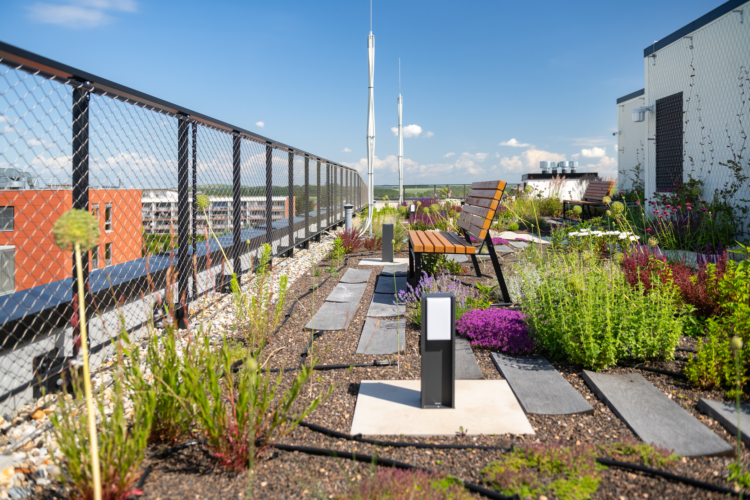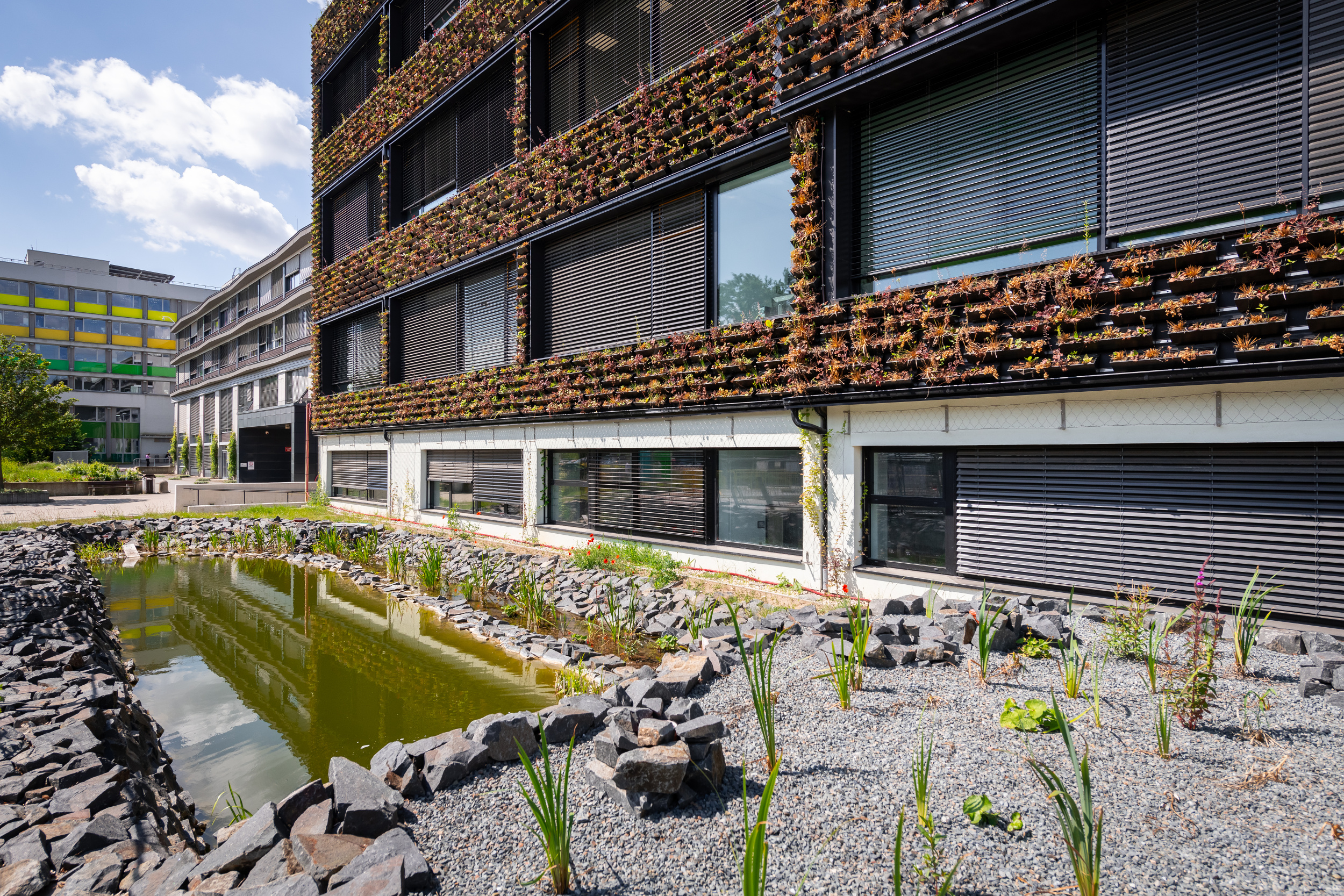 Hlavní dominantou vítězné budovy je zelená fasáda osázena přibližně 12 300 rostlinami, což nejen esteticky působí na veřejnost, ale přispívá i k ochlazování okolí budovy v létě, zlepšování kvality ovzduší, podpoře městské biodiverzity a snižování hluku. Na ploché střeše je vybudována intenzivní zahrada o rozloze 530 metrů čtverečních s technologickou nástavbou zajišťující větrání a klimatizaci.