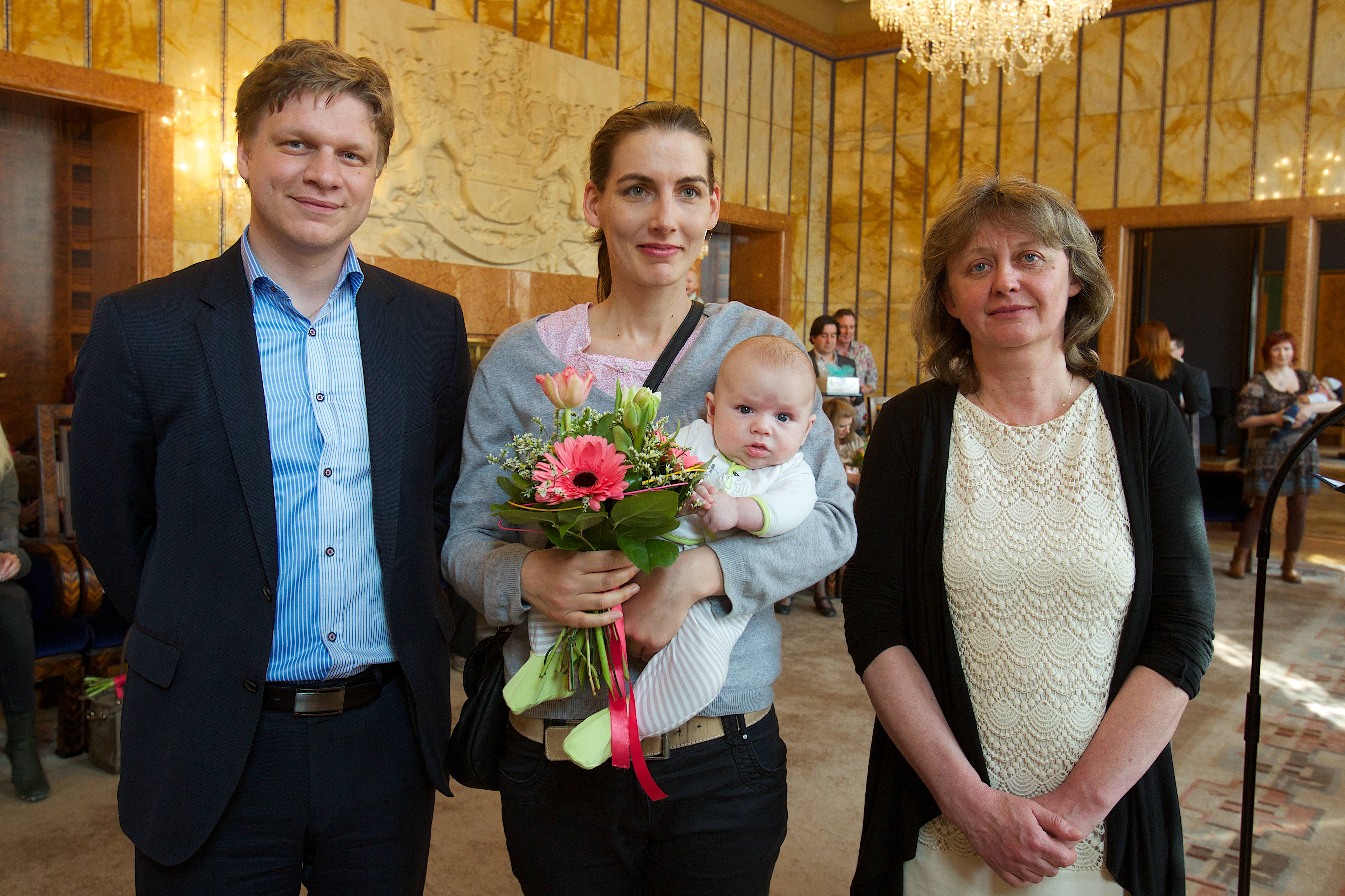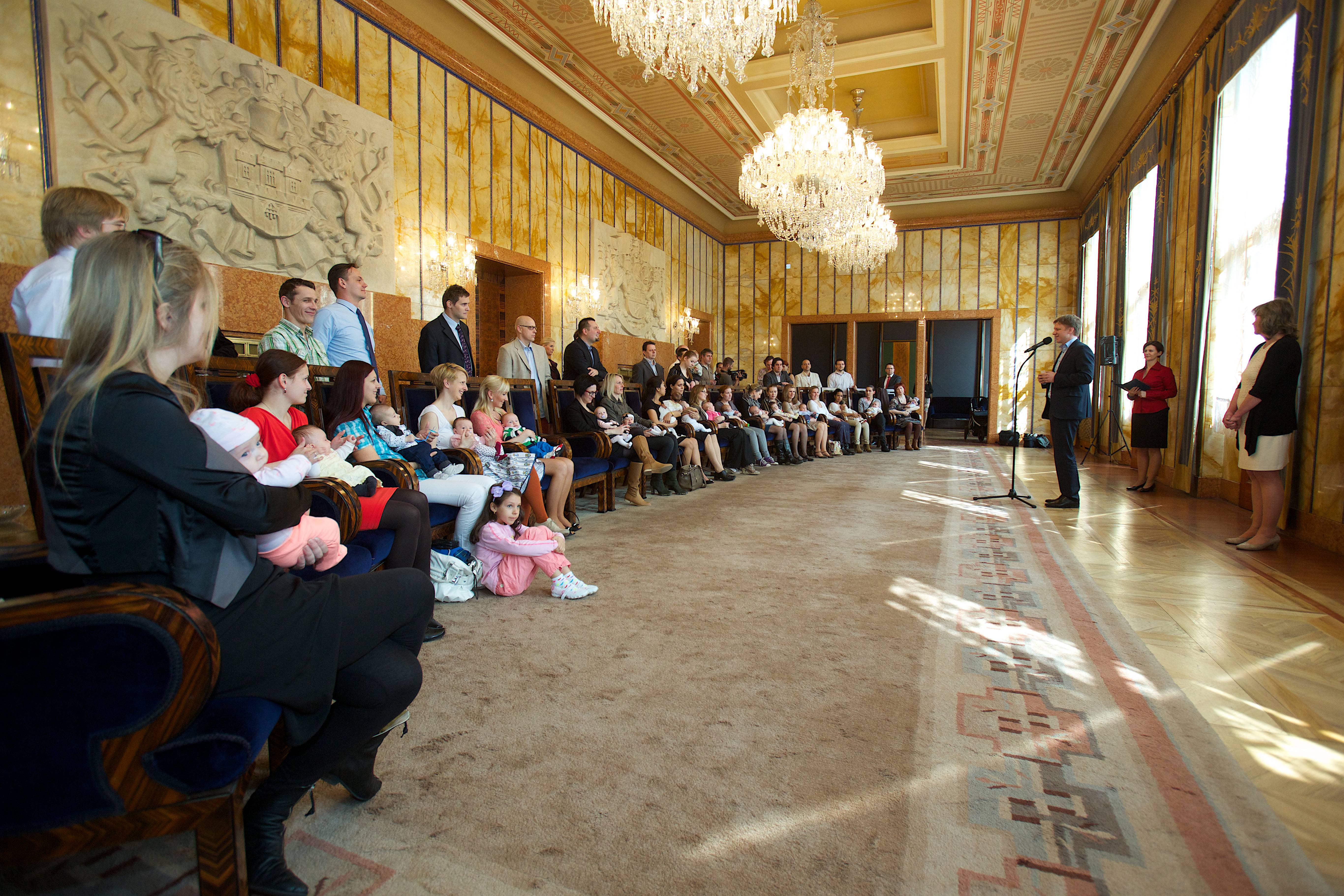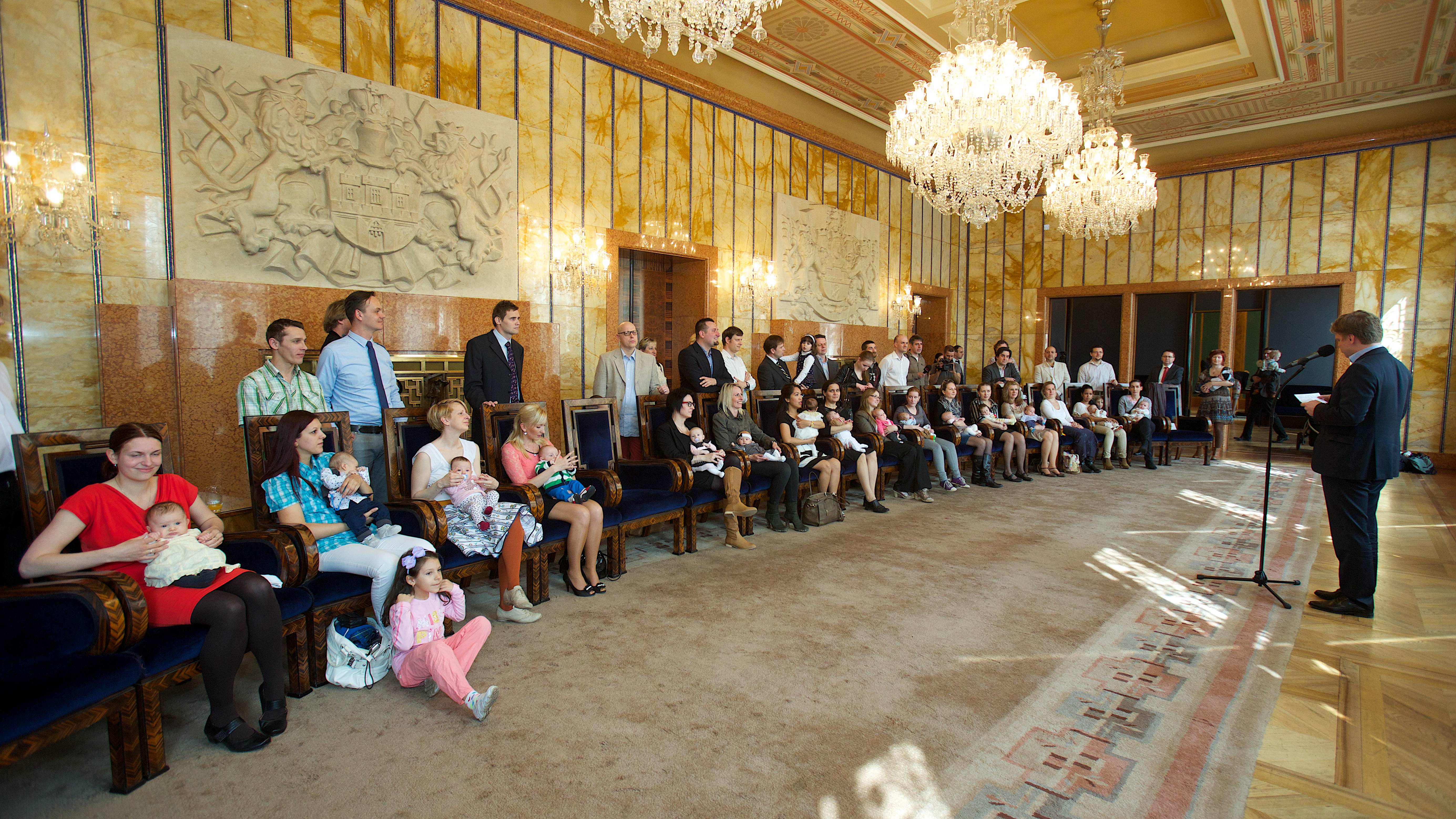 „Jsem rád, že vás mohu nejen uvítat, ale rovněž předat dary a s potěšením tak pokračovat v tradici mých předchůdců, tedy v tradici obdarovat děti a jejich rodiče - děti, které přišly na svět na Nový rok. Věřím, že jsme vám udělali radost a tento den bude jen jedním z celé řady šťastných dní, které vás v životě s vašimi dětmi čekají. V tuto chvíli mám pocit jakési sounáležitosti, neboť každá šťastná rodina žijící v Praze, je součástí jedné rodiny velké rodiny Pražanů,“ uvedl primátor Tomáš Hudeček.
