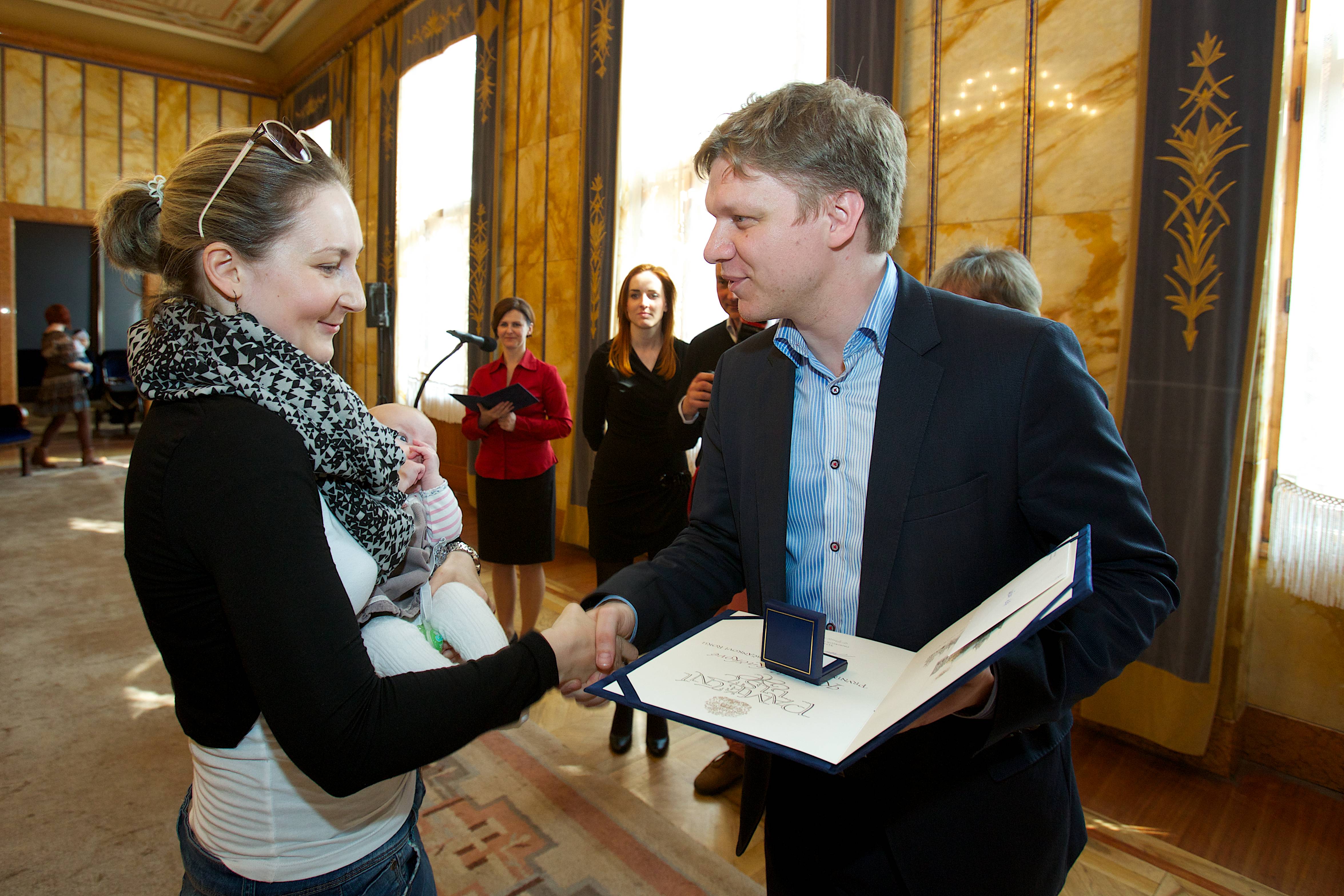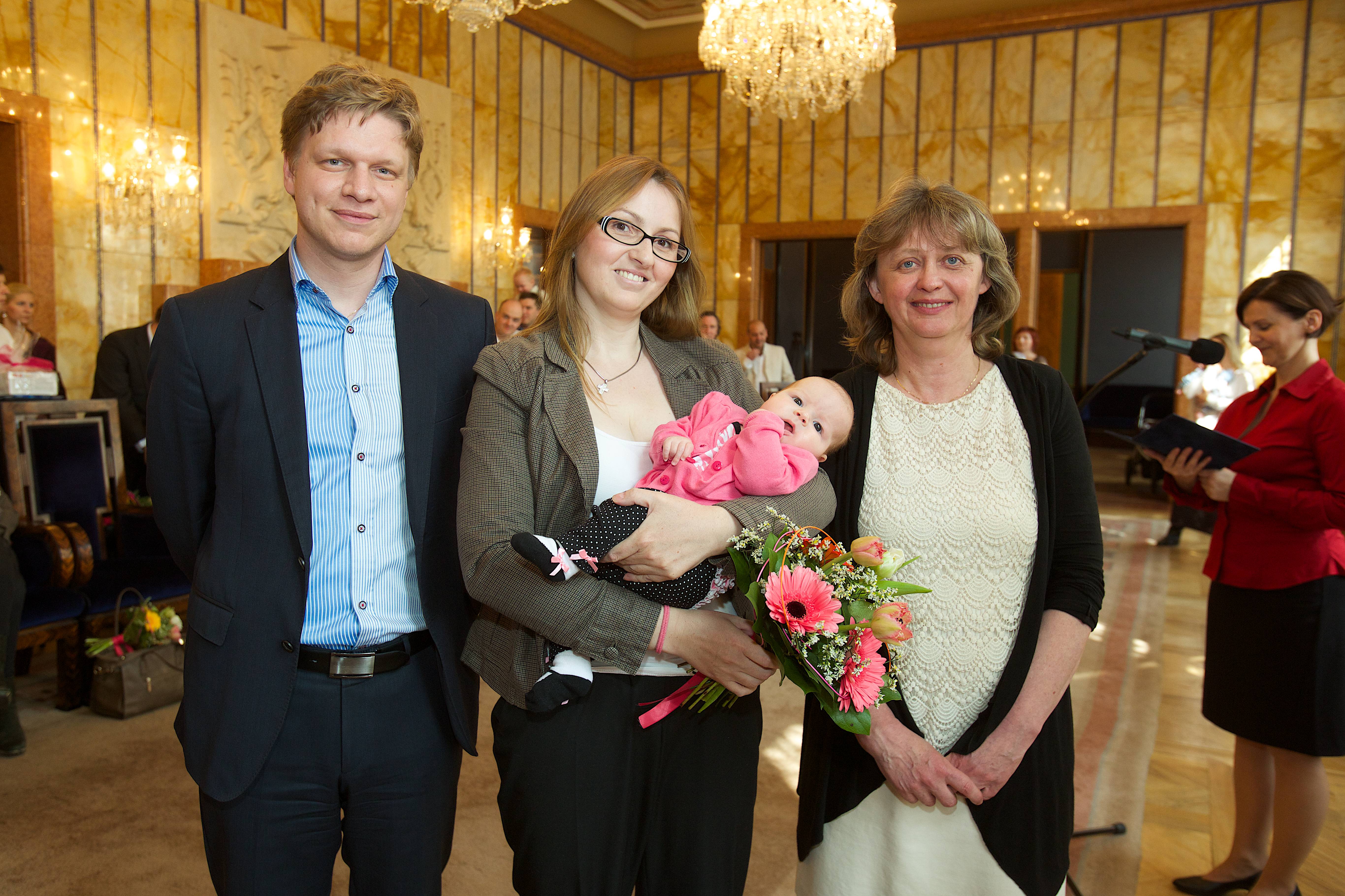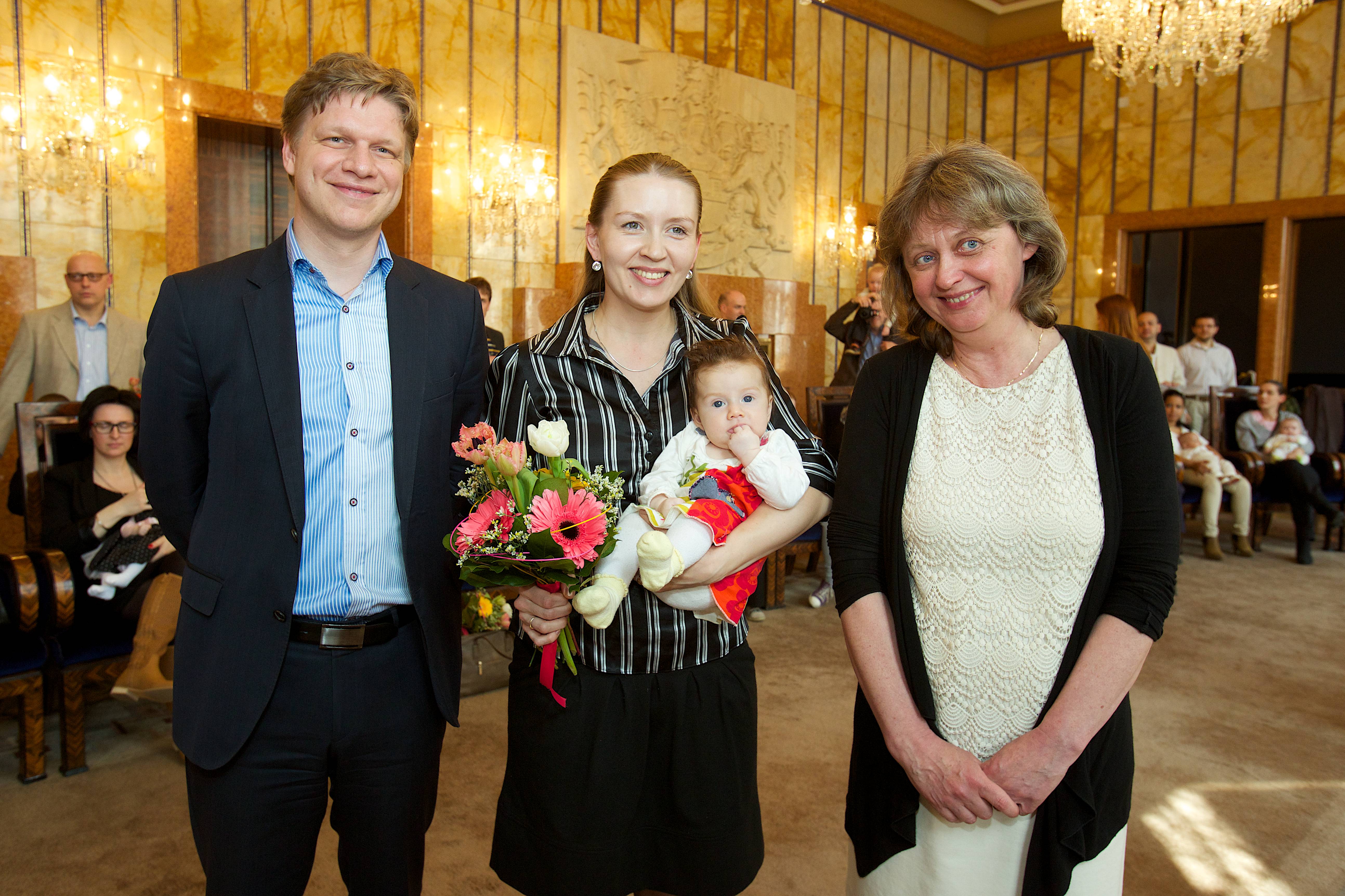 „Jsem rád, že vás mohu nejen uvítat, ale rovněž předat dary a s potěšením tak pokračovat v tradici mých předchůdců, tedy v tradici obdarovat děti a jejich rodiče - děti, které přišly na svět na Nový rok. Věřím, že jsme vám udělali radost a tento den bude jen jedním z celé řady šťastných dní, které vás v životě s vašimi dětmi čekají. V tuto chvíli mám pocit jakési sounáležitosti, neboť každá šťastná rodina žijící v Praze, je součástí jedné rodiny velké rodiny Pražanů,“ uvedl primátor Tomáš Hudeček.