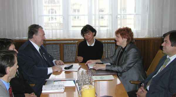 Radní Hana Halová jednala s delegací z Moskvy o budování domu národnostních menšin v Praze Radní hl. m. Prahy Hana Halová dnes v primátorském salónku Magistrátu hl. m. Prahy přijala delegaci Mezinárodní asociace na podporu kultury z Moskvy. Schůzky, která měla za cíl zejména výměnu zkušeností zástupců obou měst s výstavbou a provozováním domu národnostních menšin, se vedle ředitelky Moskevského centra kultury a tolerance Valentiny Grigorjevny Ušakovové zúčastnil také prezident Asociace na podporu kultury v Moskvě pan Igor Alexandrovič Čerkasov. Zatímco pražský dům národnostních menšin se teprve buduje a k jeho otevření by mělo dojít teprve v průběhu příštího roku, moskevský dům národnostních menšin byl již slavnostně otevřen 18. října 2003. Zástupci moskevské delegace proto při dnešní schůzce nabídli radní Haně Halové možnost osobně navštívit jejich moskevské centrum a seznámit se nejen s fungováním jejich organizace, ale také s představiteli města. "Věřím, že v průběhu příštího roku už budeme moci pozvat také my vás ke slavnostnímu otevření domu národnostních menšin v Praze. V současné době zatím řešíme, jak bude tento dům provozován a jak budou financovány aktivity jeho členů. Rozhodně nebudeme provozovat tak velkou instituci jako vy v Moskvě. Zatímco moskevská populace je složena z celkem 178 národností, v ČR je to jen 11 národnostních skupin. Proto nebude náš dům velikostí ani organizační strukturou srovnatelný s domem v Moskvě, vaše poznatky a zkušenosti však budou pro nás velmi podnětné," řekla při dnešním setkání radní Hana Halová. Podle asistenta radní Halové Jaroslava Balvína, který se přímo věnuje problematice národnostních menšin, bude připravovaný dům v Praze čtyřpatrový a pro každou z národnostních menšin budou v jeho prostorách vymezeny celkem 2 kanceláře.V budově budou i sály pro kulturní vyžití, promítací sál pro 60-80 osob, knihovna a další. V Praze 24.10.2003