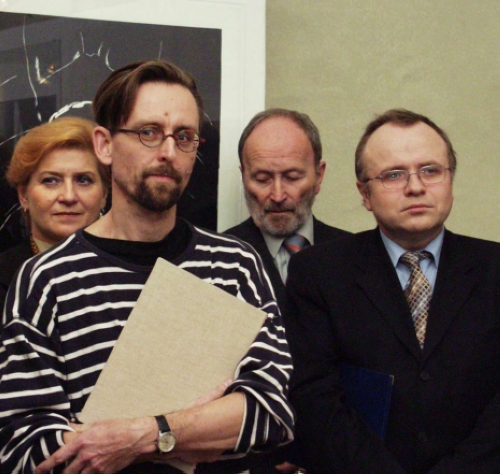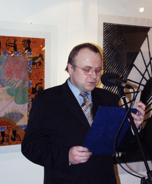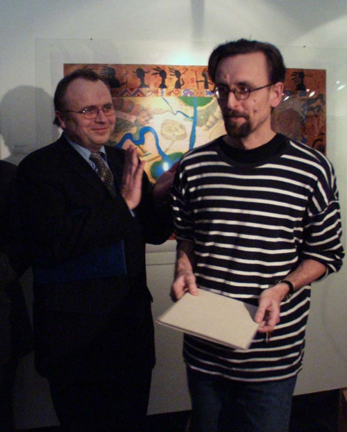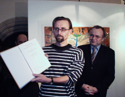 P1230063.jpg (FOTO - ... a předal grafikovi Cenu Vladimíra Boudníka udělovanou hlavním městem Prahou)