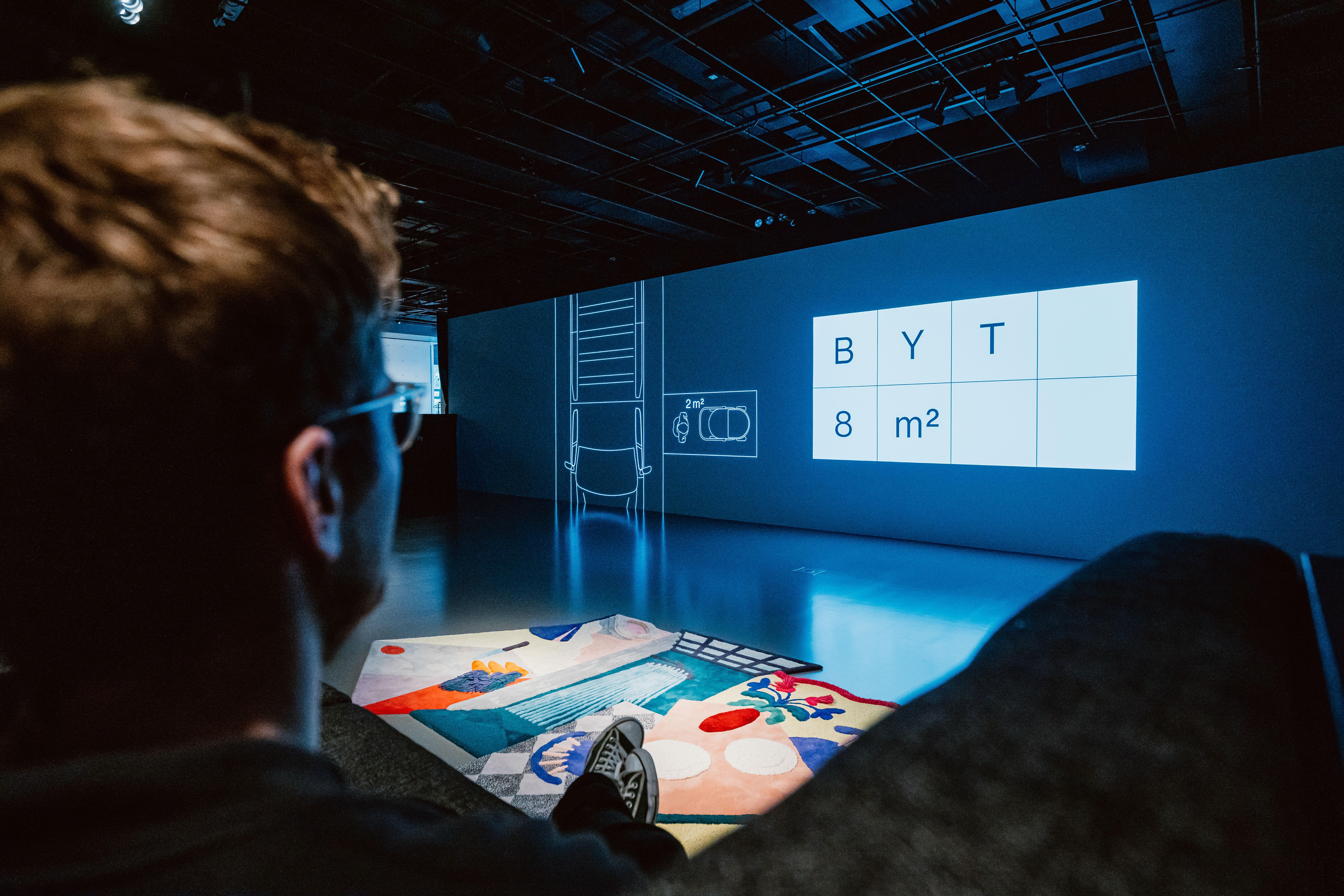 Datovou část výstavy doplňuje audiovizuální esej o současné podobě bydlení – Domy, byty, lidi. Tu připravili Eugen Liška s Martinem Vronským z materiálu fotografa Vojtěcha Veškrny, který na svých fotografiích zachytil domovy obyvatel Prahy – od půdních vestaveb s výhledem na centrum, byty v panelácích až po bezdomovecké nocležiště. Na grafickém zpracování dat se podílela studia Oficina a Ex Lovers. Hudbu připravili hudebník a producent Aid Kid ve spolupráci se zvukařem Jakubem Juráskem. Součástí expozice je také pohovka o velikosti nejmenšího pražského bytu, kterou navrhl architekt Benedikt Markel. Koberec na stejné téma pro výstavu připravila výtvarnice Anna Štajgová ze studia Masopust.