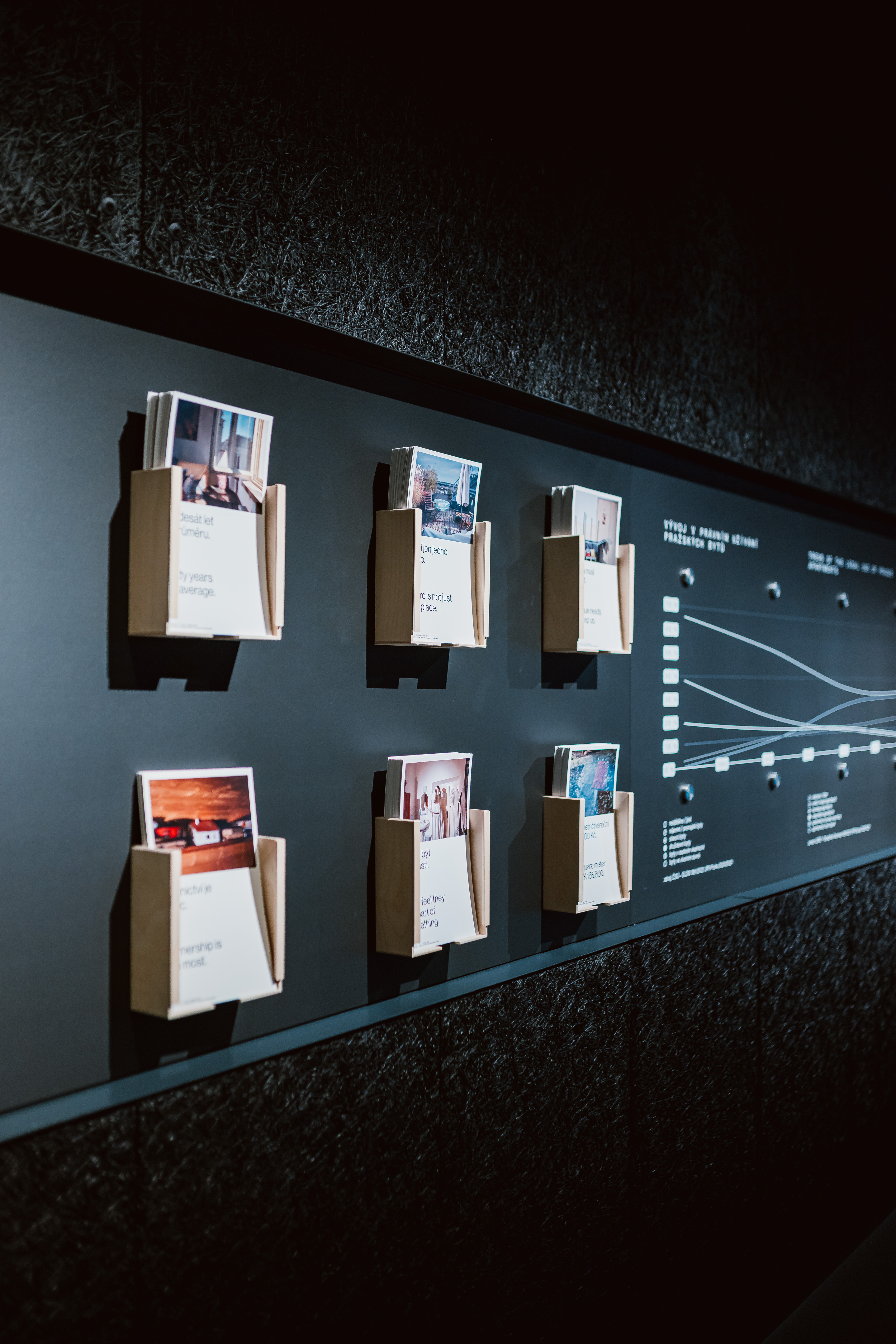 Údaje, které návštěvníci najdou v expozici, popisují současný stav bydlení. V Praze je podle sčítání lidu z roku 2021 celkem 721 332 bytů. Průměrný pražský byt má zhruba 70 m2, novostavby už pracují s menší rozlohou (okolo 50 m2). Na koupi běžného bytu si zájemce musí připravit 13 ročních platů, v porovnání s tím například v Belgii stačí 5 ročních příjmů. Podobných a často překvapivých dat je v expozici mnohem více.