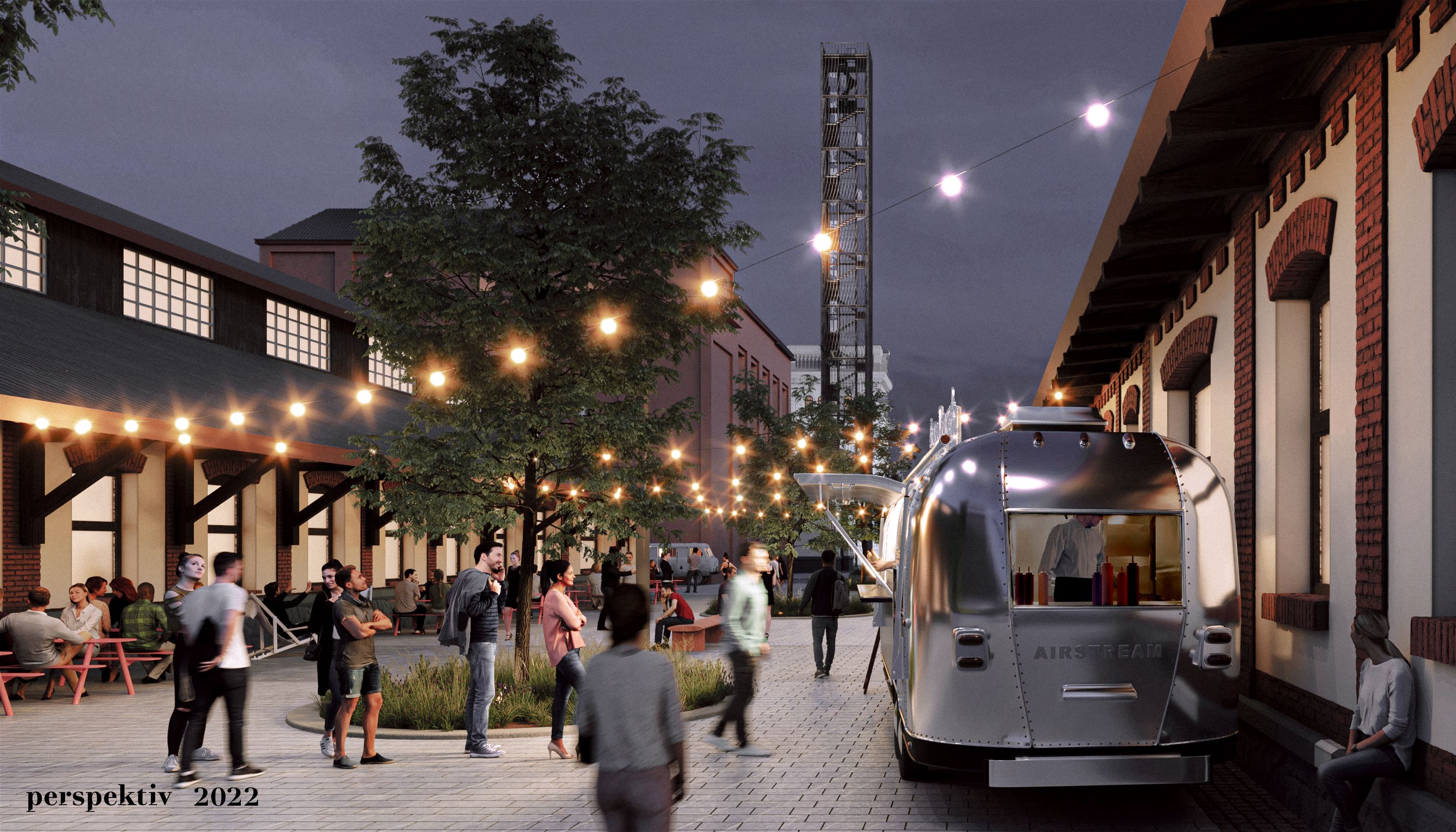 „Navrhujeme nové Meziprostory Pražské tržnice se zachováním lidského měřítka a čitelné struktury. Plochy členíme pomocí různorodé dlažby a drobných detailů. Redukcí plotů na nezbytné provozní minimum současně otevíráme celý areál městu. Klíčovým tématem pro nás bylo doplnění stromů v prostoru. Transformace místa s novou identitou včetně systému mobiliáře zajistí vyšší atraktivitu a návštěvnost všech obyvatel Prahy,“ uvádějí Martin Stára a Ján Antal, autoři vítězného návrhu ze Studia Perspektiv.