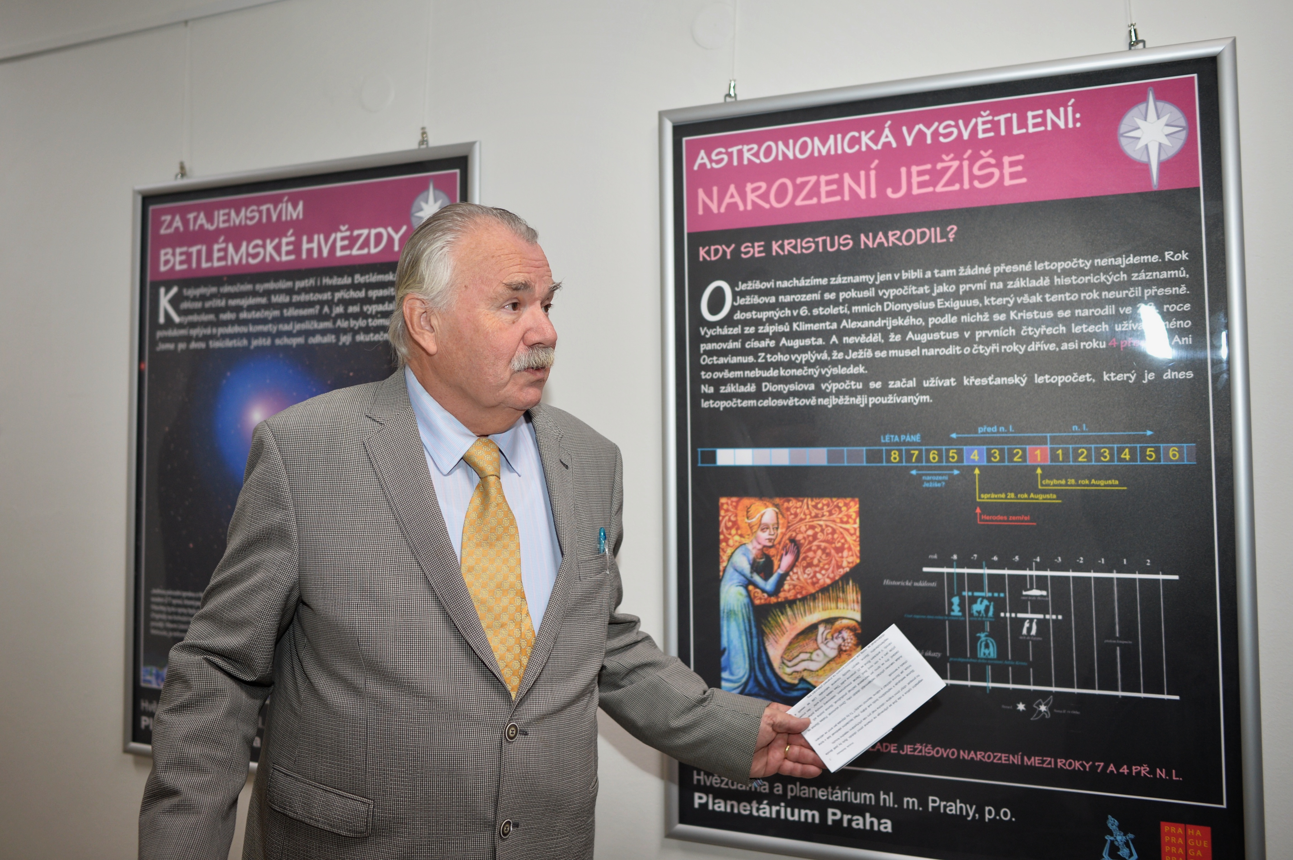 „Dnešním dnem začíná měsíc, který zakončíme u nás asi nejoblíbenějšími dny, svátky vánočními. Již po dva tisíce let je pro křesťanství betlémská hvězda posvátným symbolem zvěstování narození Ježíše Krista. Krásný příběh, který všichni známe, s sebou nese mnohá tajemství. A v dnešní moderní době, kdy znalosti kosmu výrazně pokročily, mnoho těchto záhad odkrývá svoji tvář, ale zároveň vytváří otázky nové. Výstava „Za tajemstvím betlémské hvězdy“ nám toto pátrání a odhalování zase o kousek přiblíží. Hlavní město Praha se snaží i v prostorách, jako je Nová radnice, podporovat kulturu a poznávání, proto budu rád, pokud výstavu navštíví co nejvíce lidí, rodin a dětí. Všechny také zvu, ať se vydají do Hvězdárny a planetária hlavního města Prahy a zde v tomto vzrušujícím pátrání a objevování pokračují,“ uvedl radní hl. m. Prahy Jan Wolf.