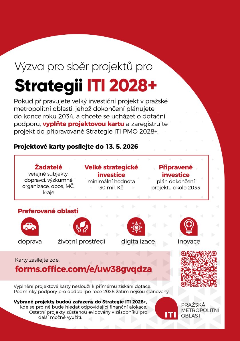 Nositel ITI PMO v souvislosti s přípravou nové Strategie ITI Pražské metropolitní oblasti pro období 2028+ vyhlašuje výzvu na sběr projektových záměrů. Cílem této výzvy je identifikovat nejvýznamnější investiční projekty v území Pražské metropolitní oblasti, které by mohly být uplatněny v následujícím programovém období EU. Výzva bude otevřena 3 týdny.