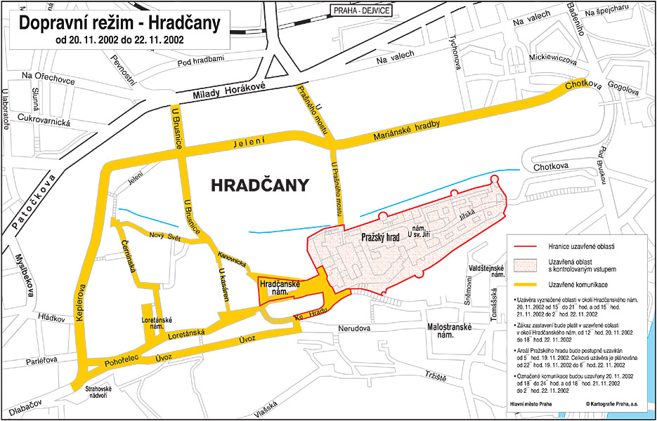 Pražský primátor Igor Němec a vládní zmocněnec pro přípravu summitu NATO Alexandr Vondra dnes poskytli sdělovacím prostředků základní informace k opatřením, která budou uplatňována v hlavním městě v souvislosti s konáním summitu. Jak v úvodu tiskové konference zdůraznil primátor, účastníci dostali velmi podrobné materiály, včetně mapek, které by měli v maximální možné míře ve svých sdělovacích prostředcích k informovanosti občanů využít. „Už dnes funguje call-centrum, které je řízeno centrálně v budově Magistrátu, kde se mohou lidé dotazovat na to, co je v souvislosti se summitem zajímá. Od 1. listopadu pak bude v provozu tzv. Zelená linka - tedy bezplatná, kde se občané rovněž mohou zeptat na cokoli kolem NATO. Dále na serveru hl. m. Prahy bude zvláštní stránka věnovaná summitu NATO, kde budou podrobné a aktuální informace. Mapky a další informace jsou k dispozici na CD-romech, dostanou je také městské části,“ uvedl primátor a dodal, že městké části, kterých se dotýkají opatření připravovaná v souvislosti se summitem, s Magistrátem hl. m. Prahy spolupracují, jejich zástupci jsou také v call-centru, takže by nemělo podle primátora docházet k informačním nedostatkům. Alexandr Vondra, vládní zmocněnec pro zasedání NATO, požádal, aby sdělovací prostředky tlumočili obyvatelům prosbu o porozumění a shovívavost během summitu. „Budou to dva dny, připočítáme-li ještě odjezdy a příjezdy hostů, tak maximálně tři dny,“ uvedl Alexandr Vondra. Vyjádřil zároveň poděkování za pomoc všem, kteří tuto akci připravují, také Magistrátu hl. m. Prahy, Praze 1, Praze 4 a Praze 6. Pokud jde o zvláštní bezpečnostně-dopravní opatření, uvedl Vondra, že se budou týkat asi 200 zvláště chráněných osob, tedy nejvyšších představitelů států a členů vlád, včetně ministrů zahraničí a obrany, kteří se budou po Praze pohybovat v doprovodu bezpečnostních složek. Ostatní účastníci budou podle Vondry využívat autobusové kyvadlové dopravy. „Většina hostů přijede 20. listopadu, především v odpoledních hodinách, takže lze počítat s určitými omezeními na letišti a trasách z letiště k hotelům, kde budou ubytováni,“ uvedl Alexandr Vondra.Zcela uzavřena bude v době konání summitu oblast kolem Pražského hradu a okolí Kongresového centra, podrobné informace, včetně mapek s vyznačeným dopravním omezením, opatření týkající se škol, pohybu obyvatel v uzavřených oblastech a další, uvádíme v přílohách. Další informace budou postupně upřesňovány.