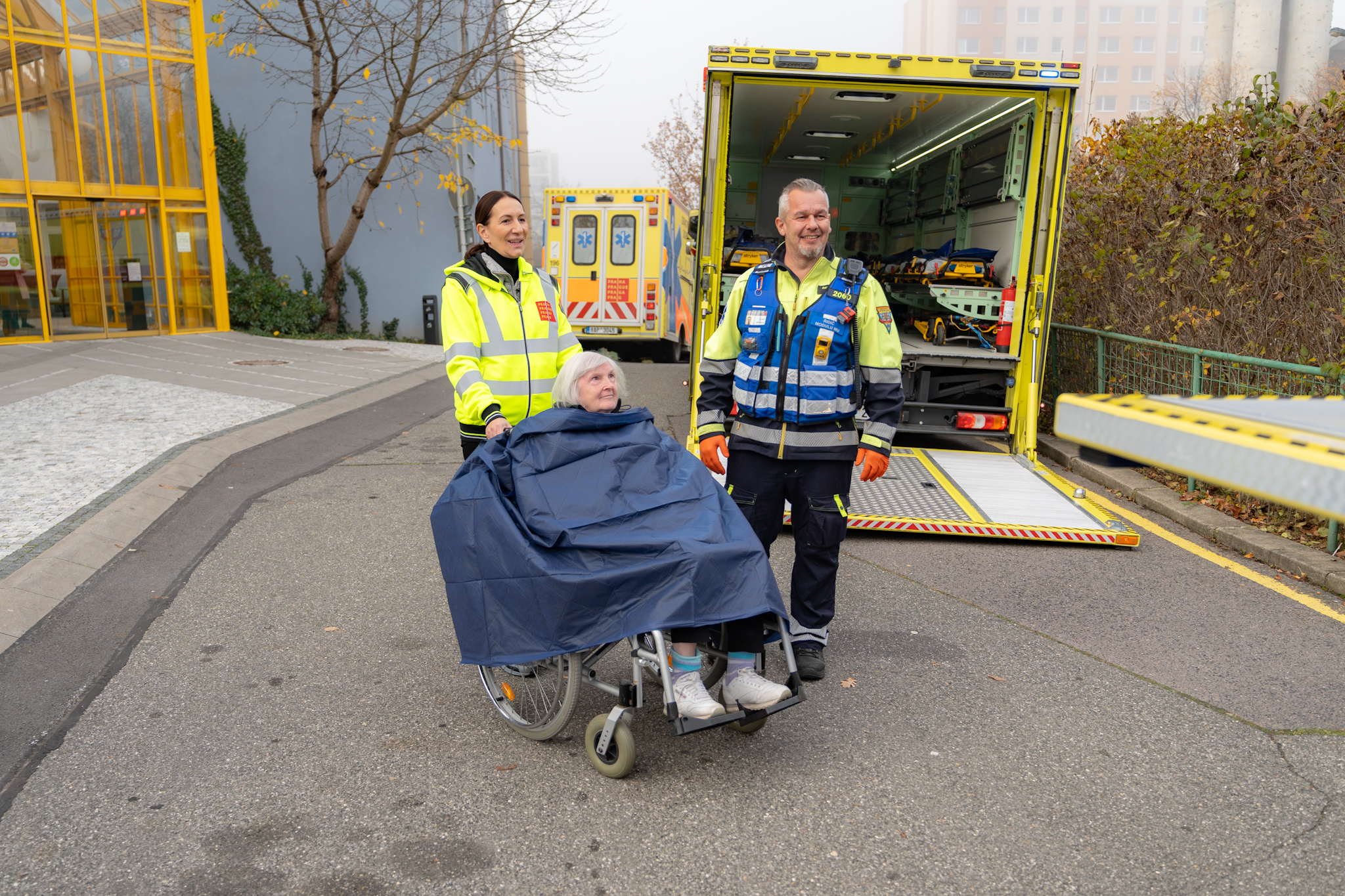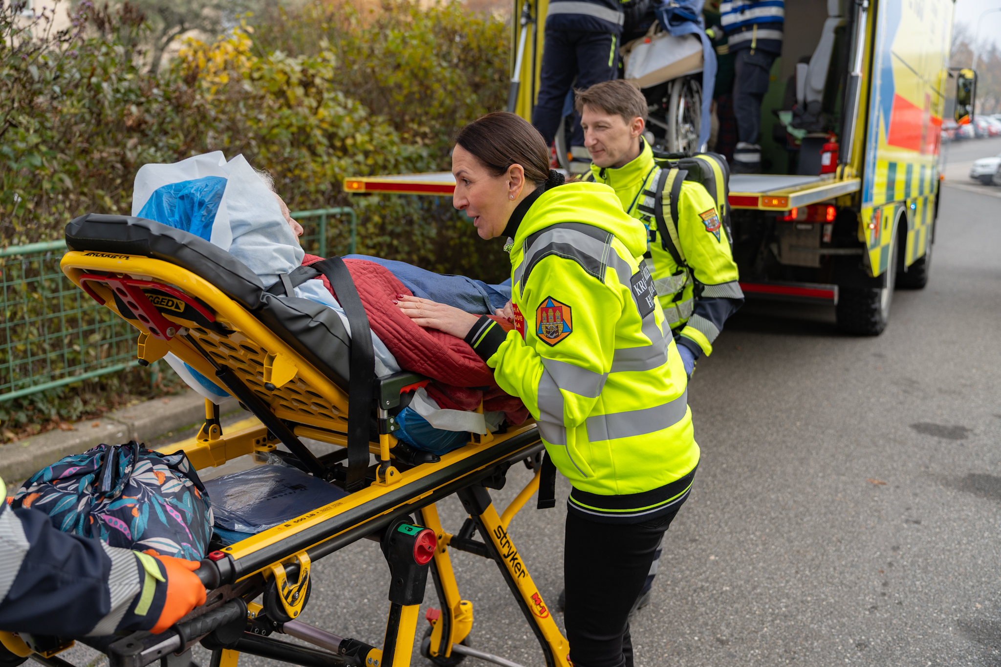 Teploty pod nulou, havárie systému vytápění, havárie vody, případně požár a klienti domova seniorů, které je potřeba dostat urychleně ven ze zařízení a do tepla. Takový byl námět společného cvičení Zdravotnické záchranné služby hl. m. Prahy (ZZS HMP) a Domova seniorů Chodov, které se uskutečnilo ve středu 5. listopadu. Zapojili se přímo i klienti domova seniorů, které záchranáři a pracovníci zařízení evakuovali speciální technikou pražské záchranné služby.
