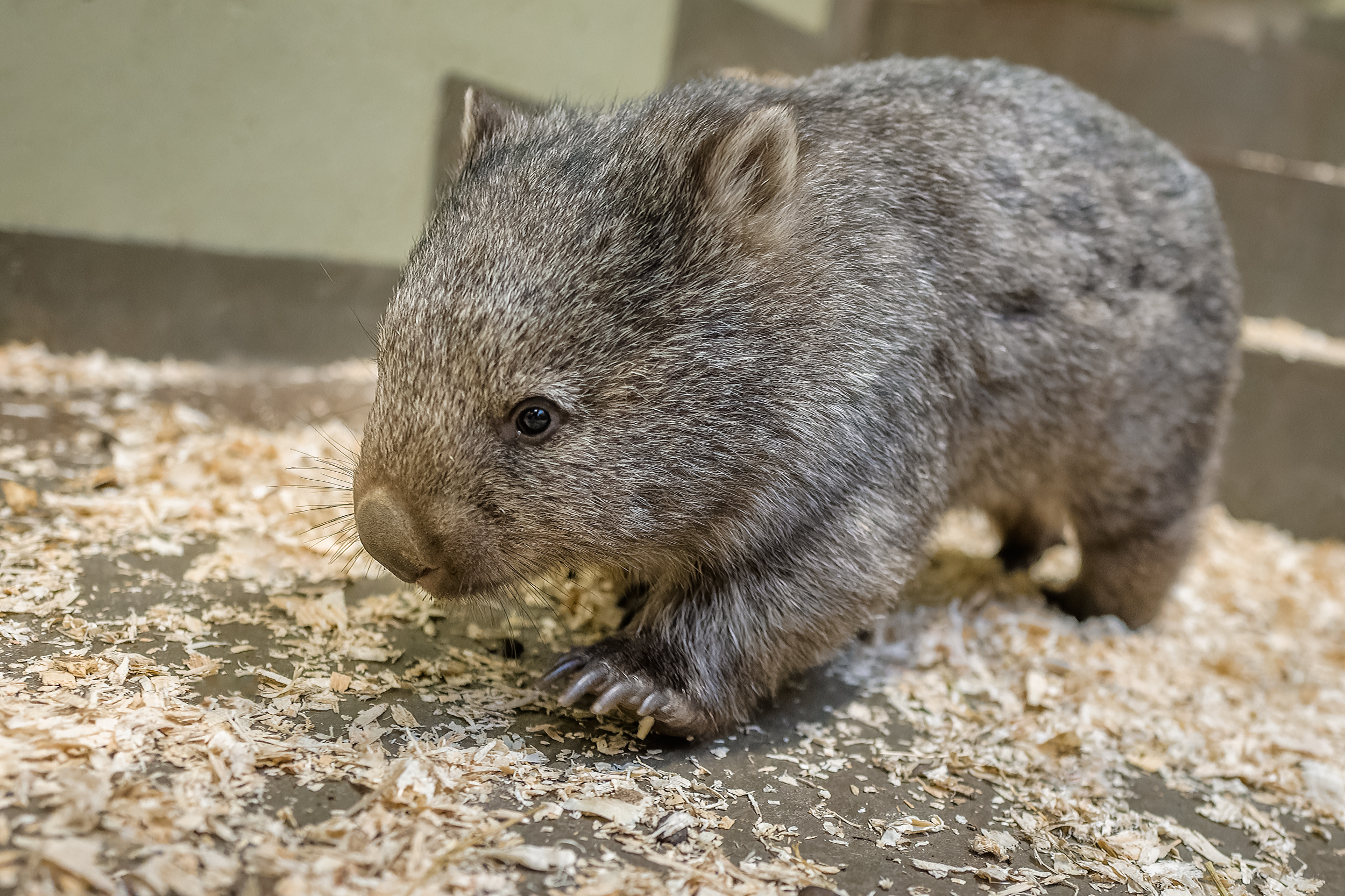 Osmnáctiměsíční samec vombata obecného dorazil do Prahy loni v prosinci téměř měsíc musel strávit v zázemí v izolaci. Momentálně váží jedenáct kilogramů, v dospělosti může vážit ještě o šest více.