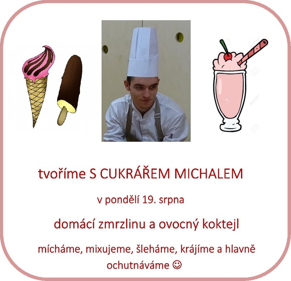 V pondělí k nám zavítá cukrář Michal. Společně s ním vytvoříme z čerstvého ovoce studenou pochoutku a také osvěžující koktejl, to vše za pomoci nejmodernější techniky a energie. Plakát ke stažení: zde