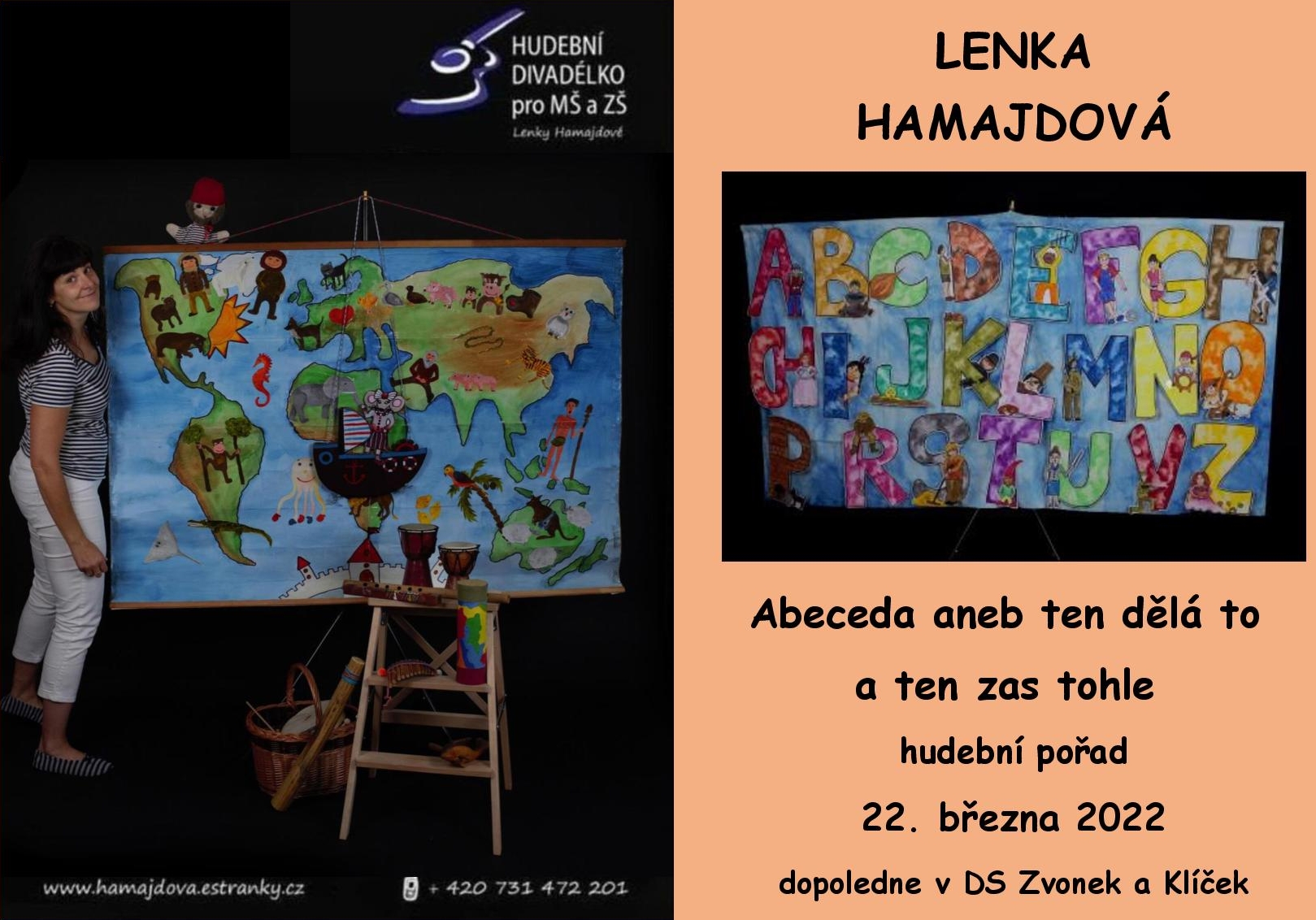 V úterý dopoledne si děti s Lenkou Hamajdovou projdou celou abecedu. Pod každým písmenkem je totiž schovaná písnička o řemeslech a povolání. Děti s Lenkou všechna písmenka odhalí. Bude se zpívat, tančit a hrát na hudební nástroje a také se dozvíme něco o tradičních řemeslech. Plakát ke stažení: zde