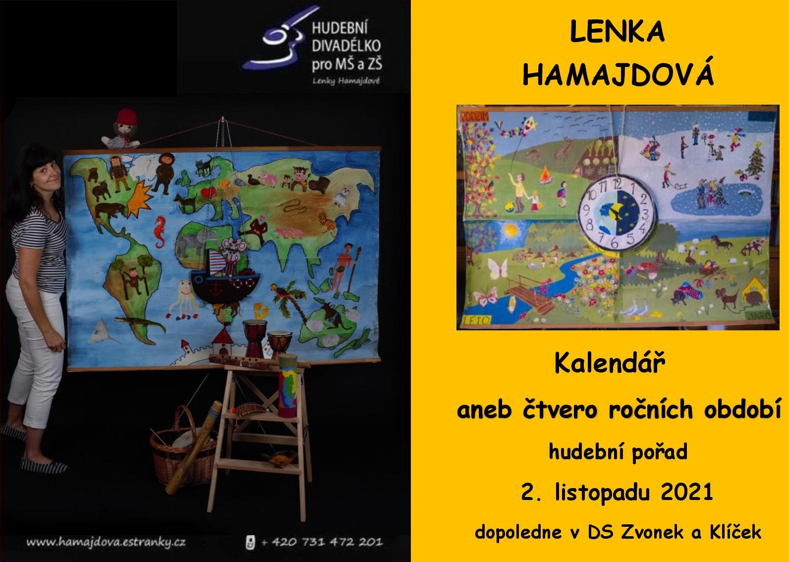 V úterý dopoledne Lenka Hamajdová rozveselí tváře našich dětí během písničkového pořadu, který bude probíhat v rámci dopoledního programu v dětských skupinách. Tentokrat se projdeme kalendářem a dozvíme se, co nám které roční období nabízí. Také si o tom zazpíváme i zatančíme. Plakát ke stažení: zde