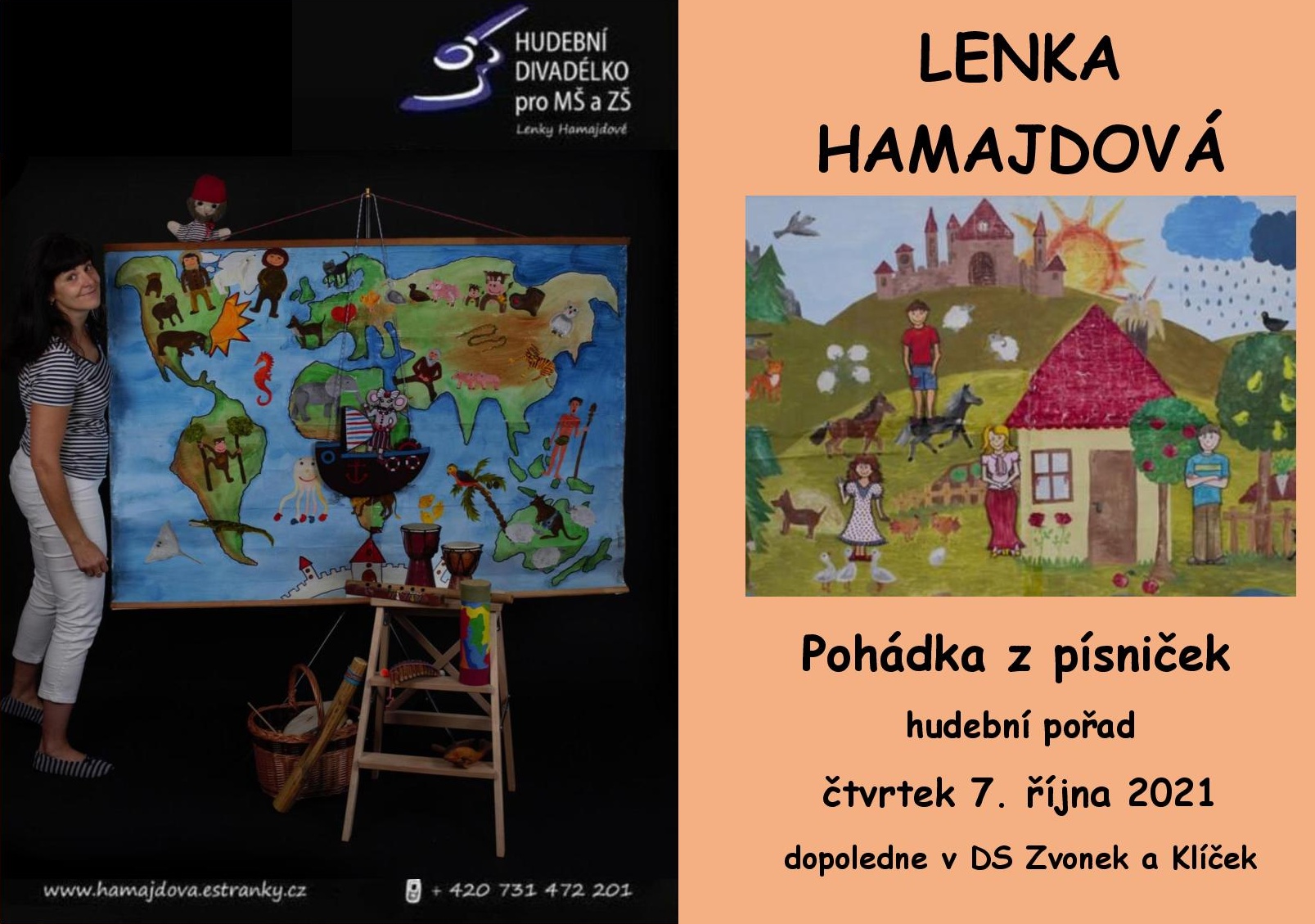 Divadlo Lenky Hamajdové nás navštíví ve čtvrtek a přiveze tentokrát řadu písniček, ze kterých si poskládáme pohádku. Nebude chybět láska, odvaha a překvapení. A protože jde o pohádku, všechno dobře dopadne. Zpívat budou všichni, zájemci mohou tančit a hrát na hudební nástroje. Plakát ke stažení: zde