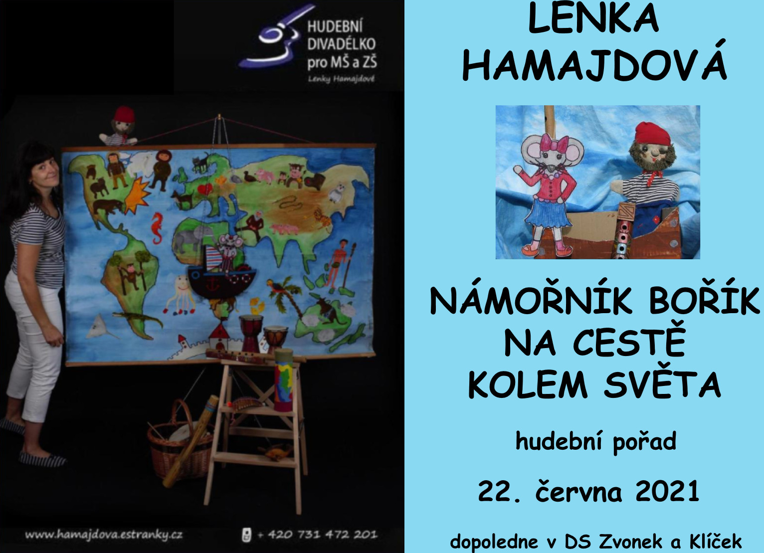 Za dětmi přijede Lenka Hamajdová s hudební pohádkou „Námořník Bořík na cestě kolem světa“. Bořík na své cestě potká hodně zajímavých věcí, lidí a zvířátek a o těch všech si spolu zazpíváme. Chybět nebude ani oblíbený tanec.