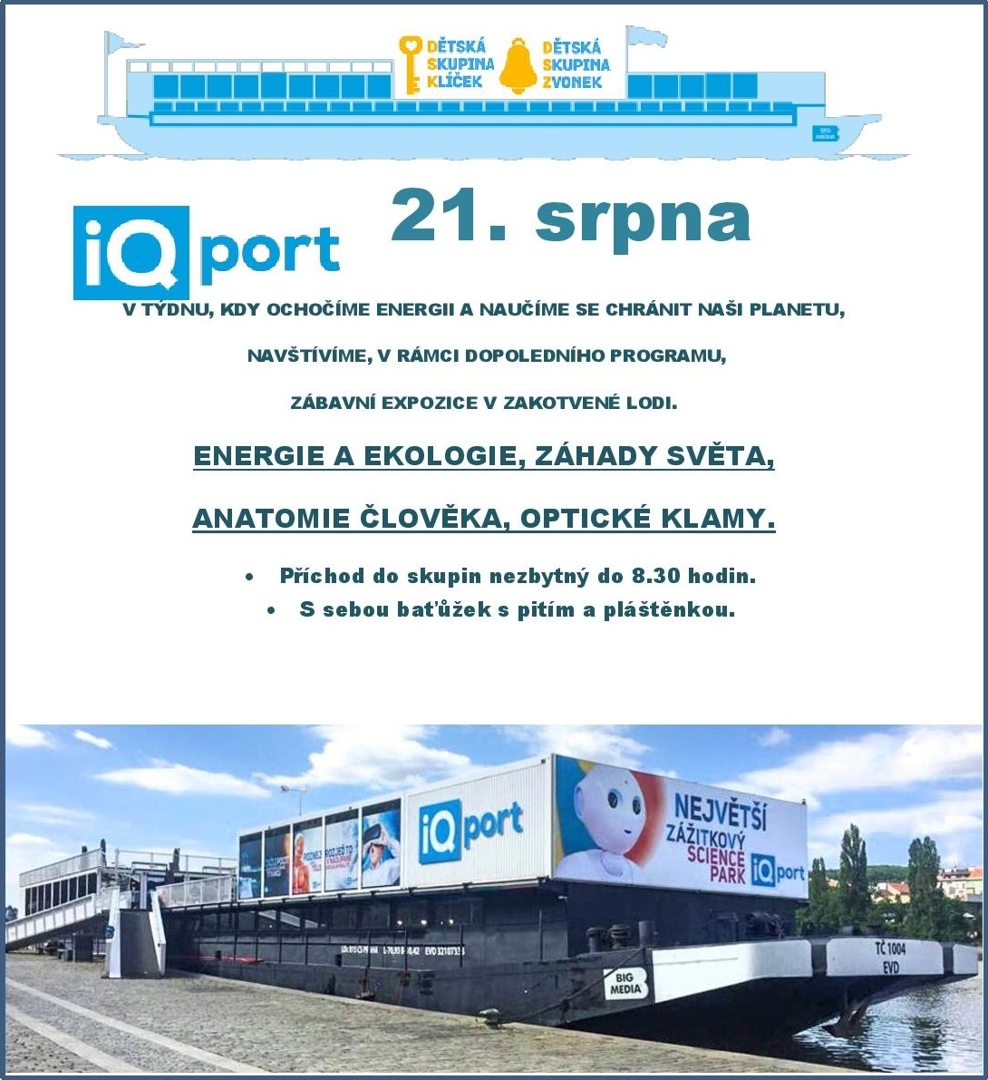 Navštívíme podruhé plovoucí zábavní expozici na Náplavce, kde tentokrát zavítáme do oblasti Energie a ekologie, Otických klamů, Anatomie člověka a Záhad světa. Příchod do skupin do 8.30 hodin. Dětem dejte baťůžek s pitím a pláštěnkou.