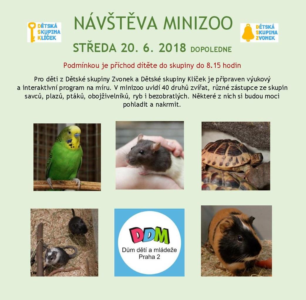Dopoledne 20. 6. 2018 navštívíme mini zoo v DDM Praha 2. Plakát ke stažení zde