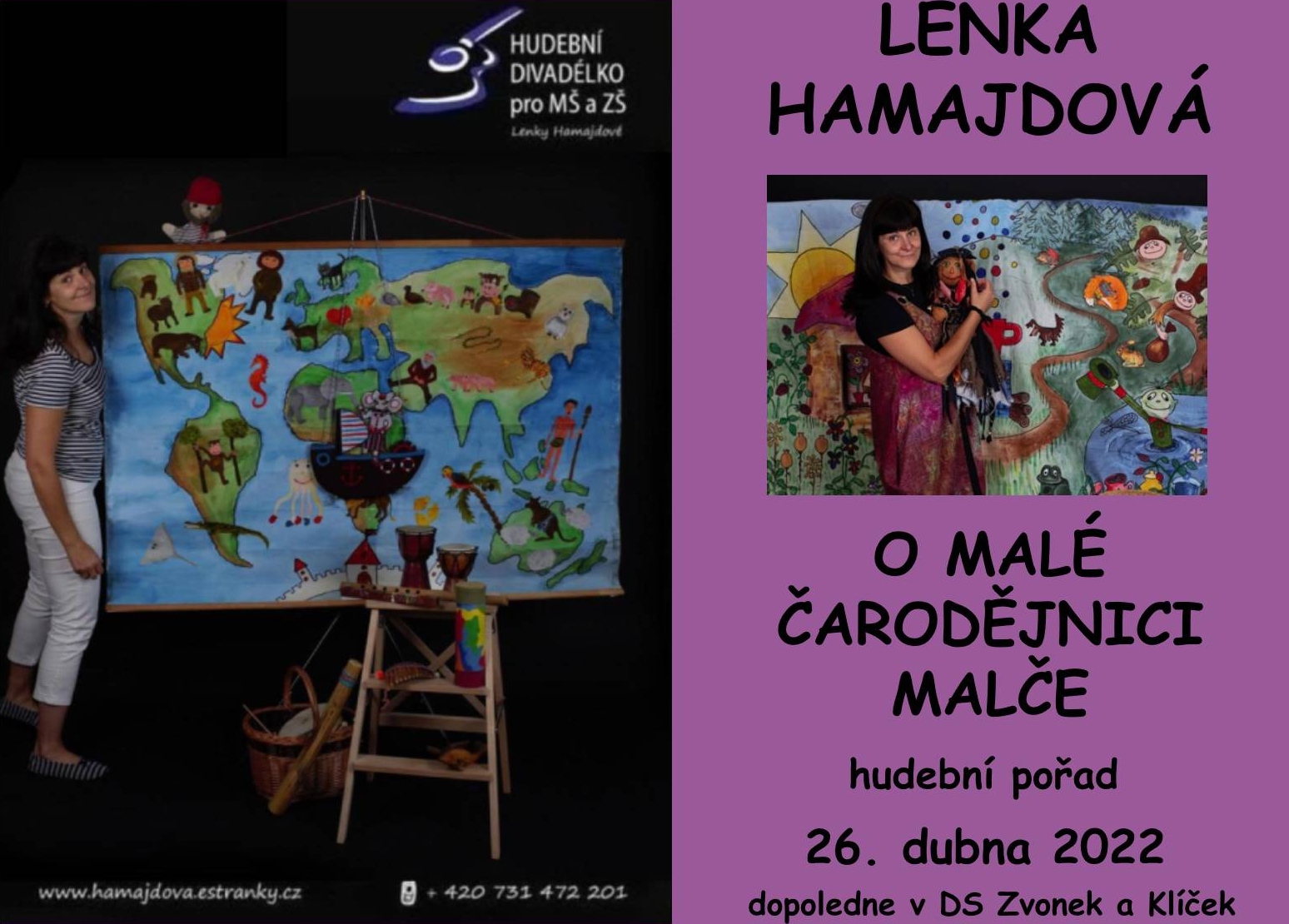 V úterý 26. dubna dopoledne prožijí děti s Lenkou Hamajdovou napínavý příběh jedné malé čarodějnice. Díky tomu se toho o čarodějnicích hodně dozvíme, a také se naučíme trošku čarovat. Na tento pořad jsme pozvali i kamarády z dětské skupiny Lvíček (AV). Užijeme si to společně. Hodně u toho budeme zpívat, hrát a tancovat. Plakát ke stažení: zde