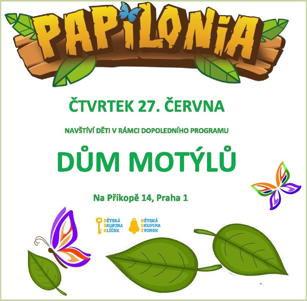 Děti v těchto dnech chovají housenky, ze kterých se do konce prázdnin vylíhnou babočky bodlákové. A aby toho nebylo málo, půjdou se všichni společně podívat do domu motýlů, kde vše uvidí ve velkém. Plakát ke stažení: zde