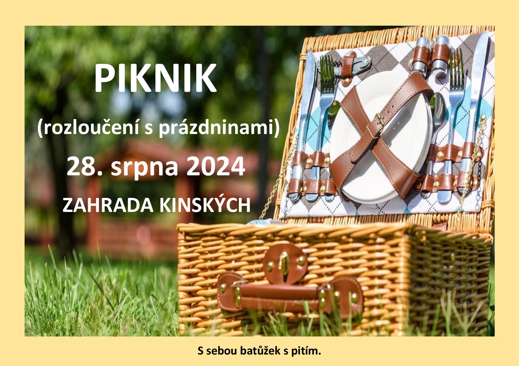 Ve středu 28. srpna se s prázdninovým provozem dětských skupiny MHMP rozloučíme piknikem v Zahradě Kinských. Posezení ve stínu stromů obohatíme o hry a dovádění na prolézačkách na dětském hřišti. Cestovat budeme tramvají a vracet se budeme na oběd. Na sebe sportovní oblečení dle aktuálního počasí a s sebou baťůžek s pitím.