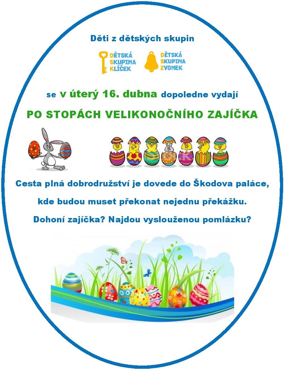 Děti se vydají na dobrodružnou cestu, která je dovede do Škodova paláce plného nástrah a překážek. Pokud je překonají a dohoní Velikonočního zajíčka, dostanou nadílku. Plakát ke stažení: zde