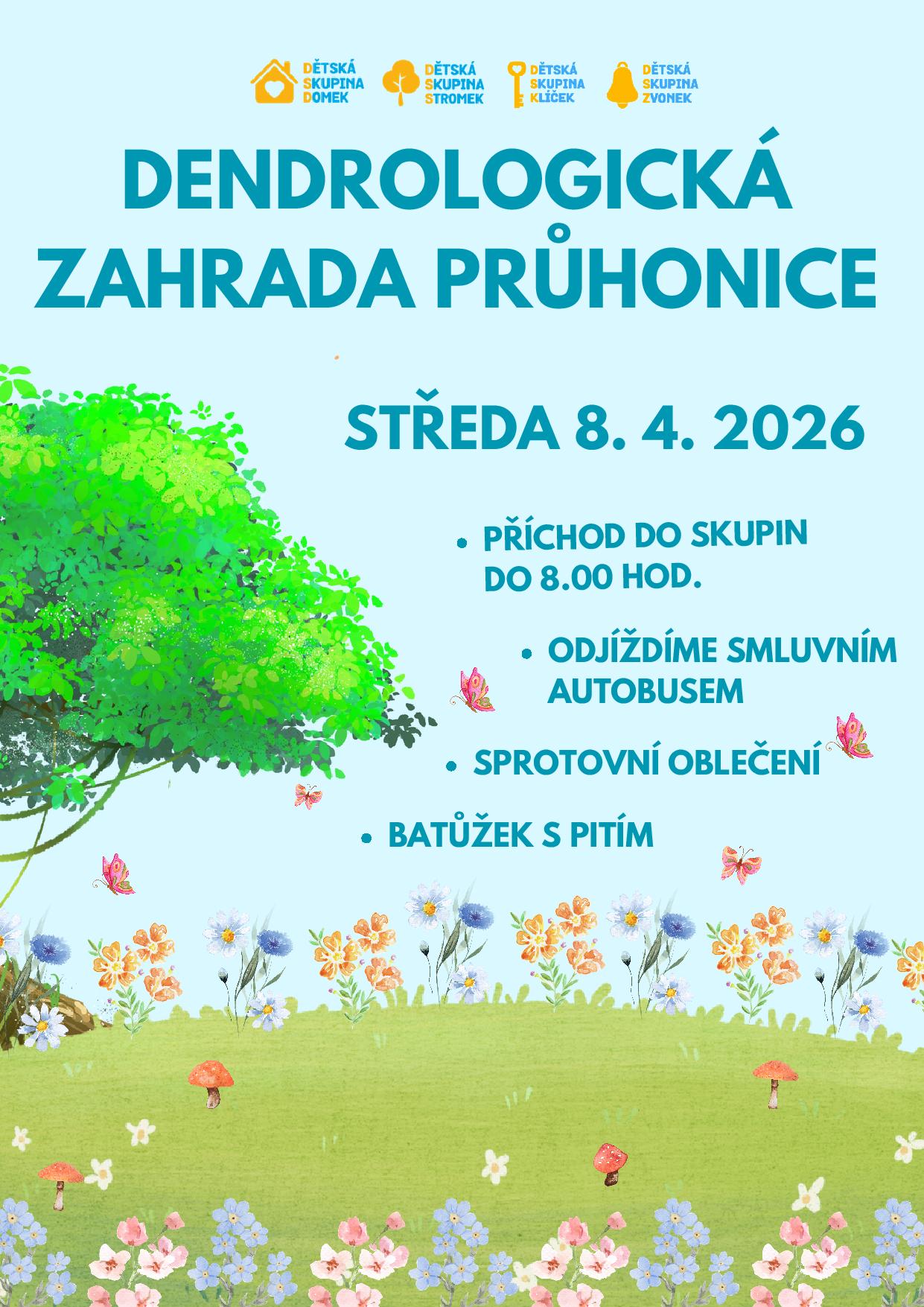 Ve středu 8. dubna 2026 jsme se poprvé v tomto roce vydali na výlet do přírody, a to do Dendrologické zahrady v Průhonicích. Chladnější ráno vystřídalo příjemné dopoledne s hřejivým sluníčkem. Zahrada, probouzející se ze zimního spánku nabízela barevná zátiší s kvetoucími narcisy a dalšími druhy rostlin. Kachny na vodní ploše předváděly své specifické a pro děti legrační představení při hledání potravy pod vodou. Moc jsme se nasmáli a výlet, který končil na dětské hřišti uprostřed stromů a květů, jsme si opravdu užili.