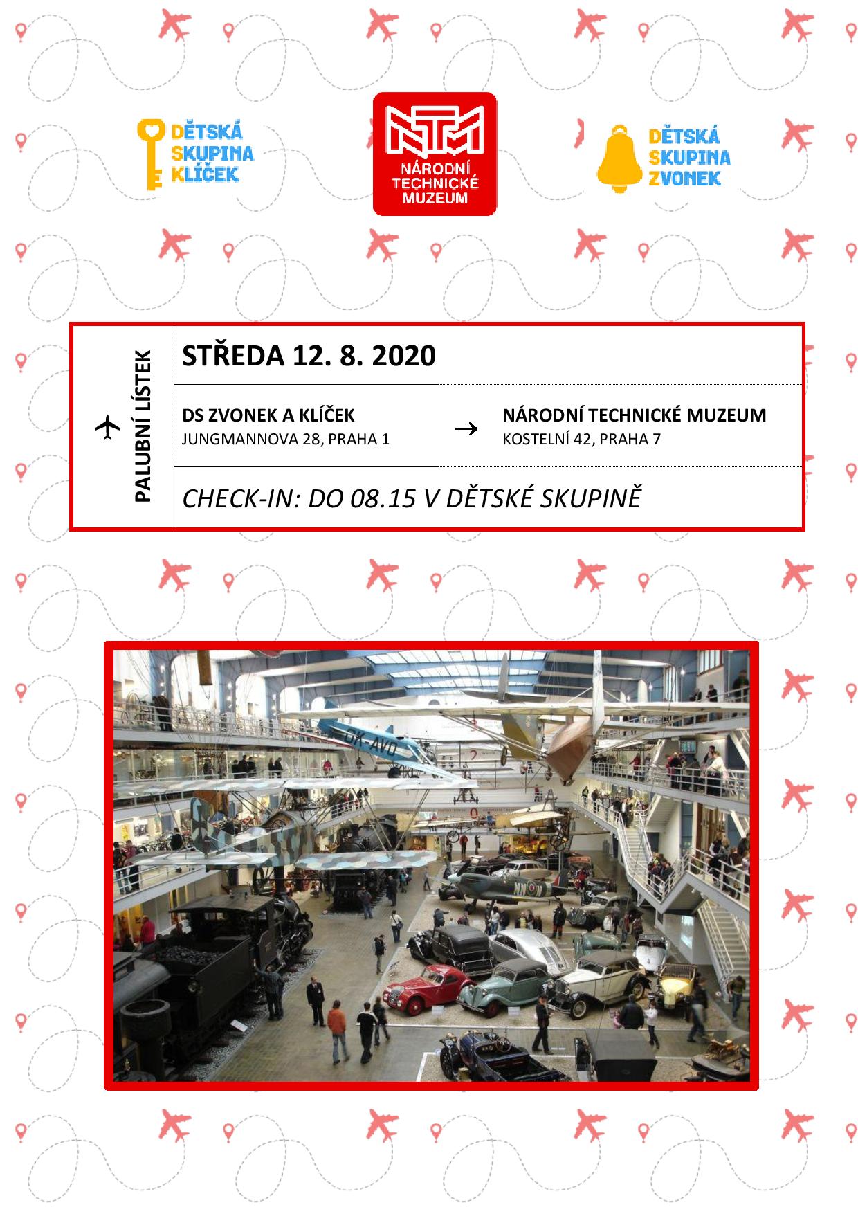 Děti v rámci dopoledního programu navštíví Národní technické muzeum, kam sice budou cestovat tramvají, ale naším cílem budou LETADLA. Navštívíme halu s dopravními prostředky a dětí zjistí, co vše létá, a jak toho člověk docílil. Sraz dětí ve skupinkách do 8.15 hod., baťůžek s pitím s sebou. Návrat na oběd. Plakát ke stažení: zde