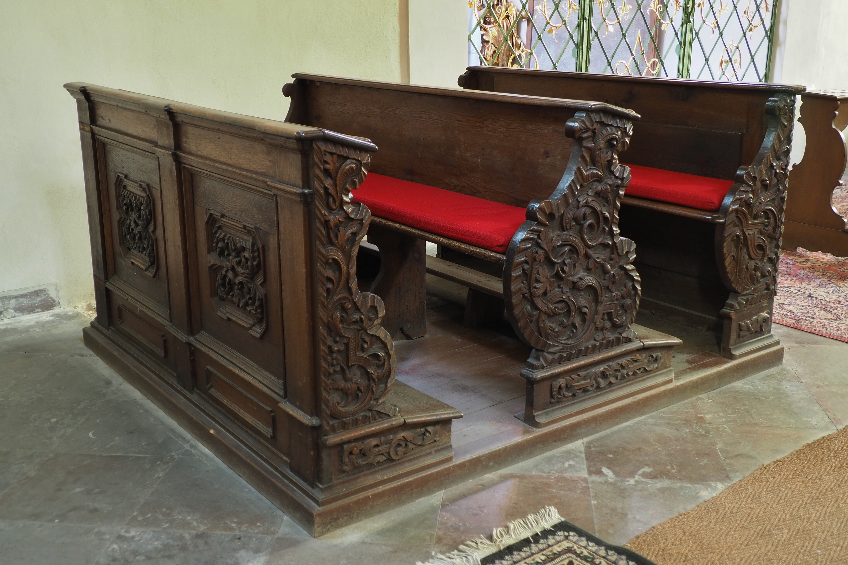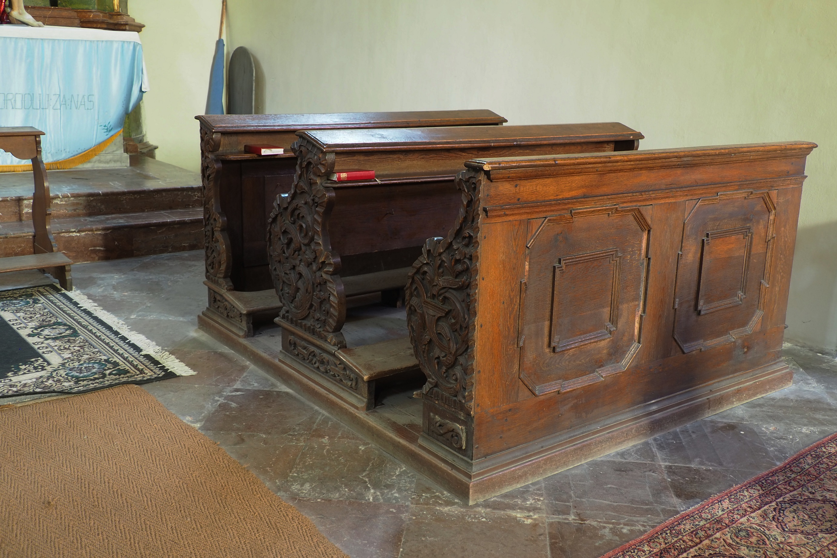 Předmět dotace: restaurování 7 kusů barokních lavic v boční jižní lodi