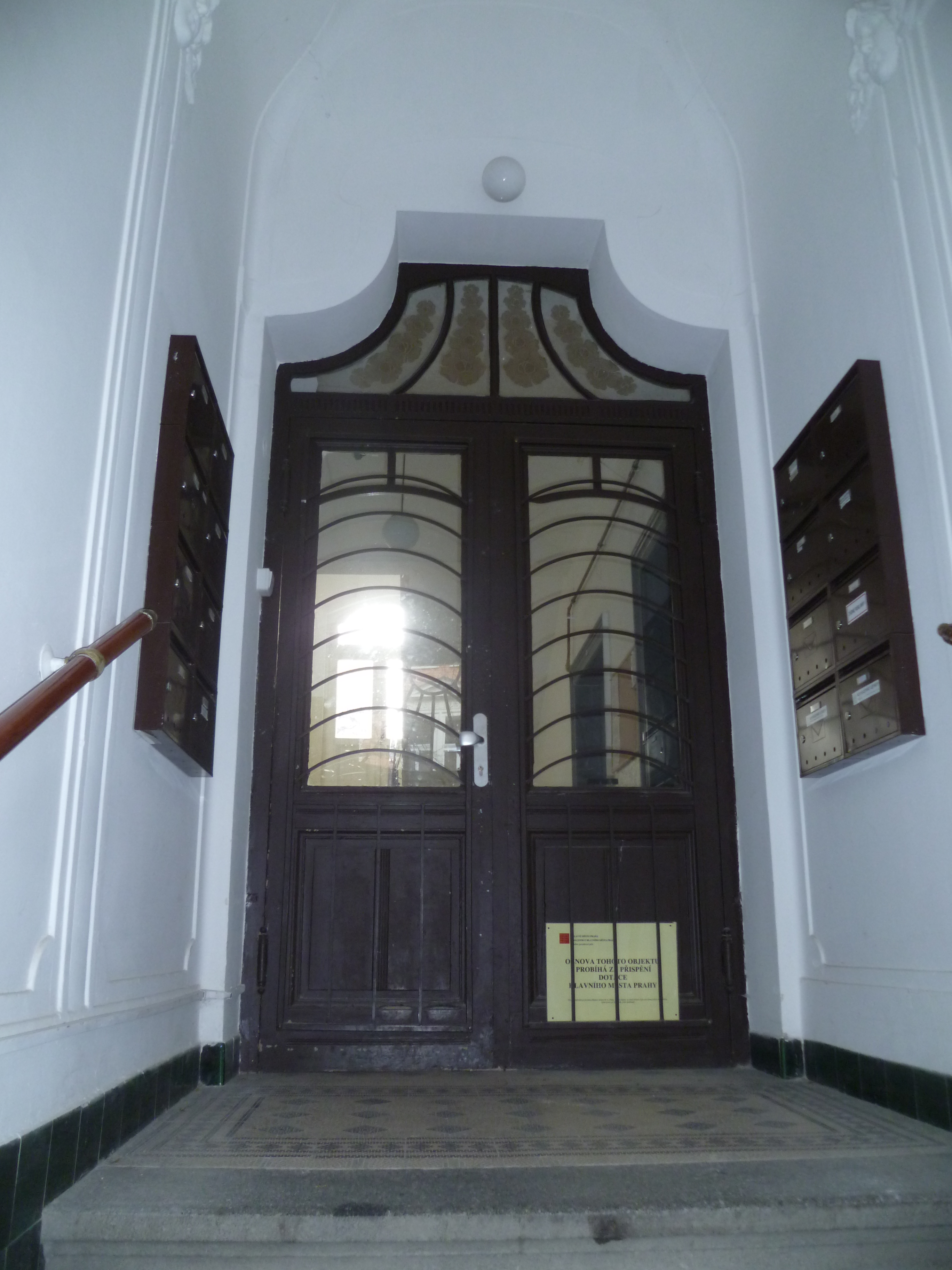 Předmět grantu: oprava uliční fasády domu, včetně opravy klempířských prvků a antigraffiti nátěru v úrovni 1. NP, oprava balkonů a repase vstupních dveří