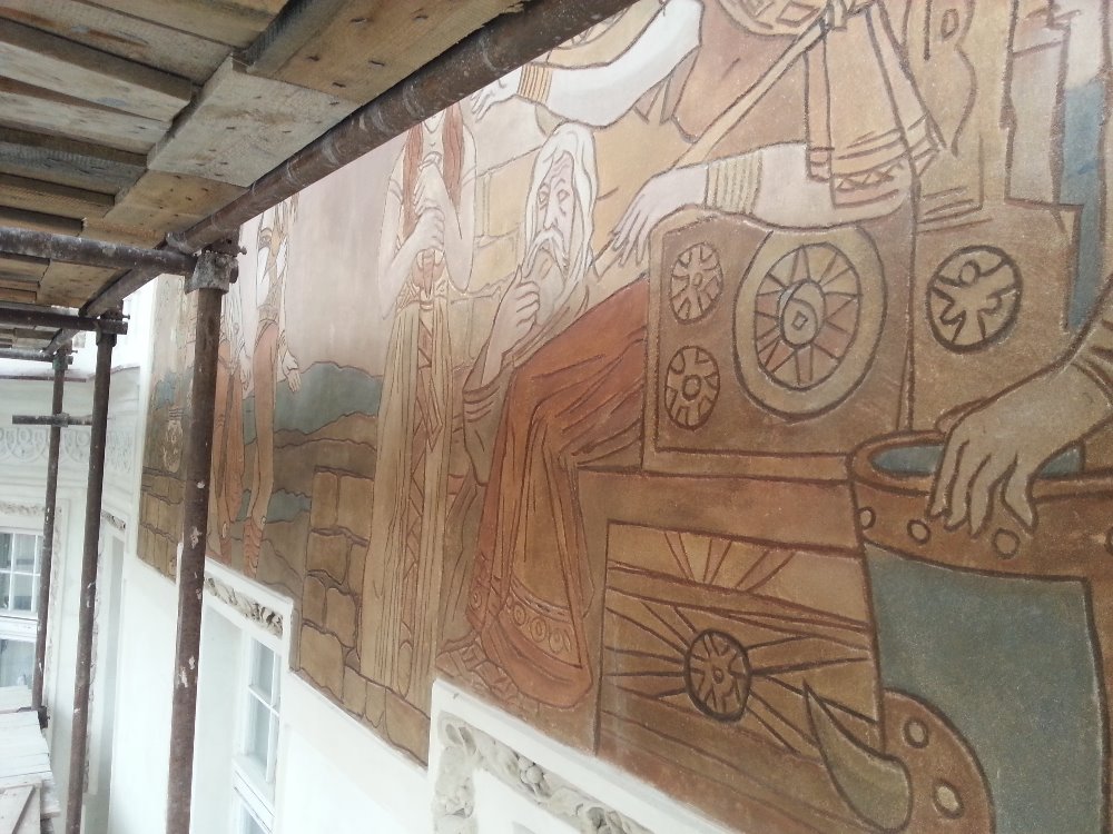 Předmět grantu: oprava uliční fasády domu - štuková výzdoba, restaurátorské práce uliční fasády domu - obrazová výzdoba (2 ks) a plastika opice (1 ks)