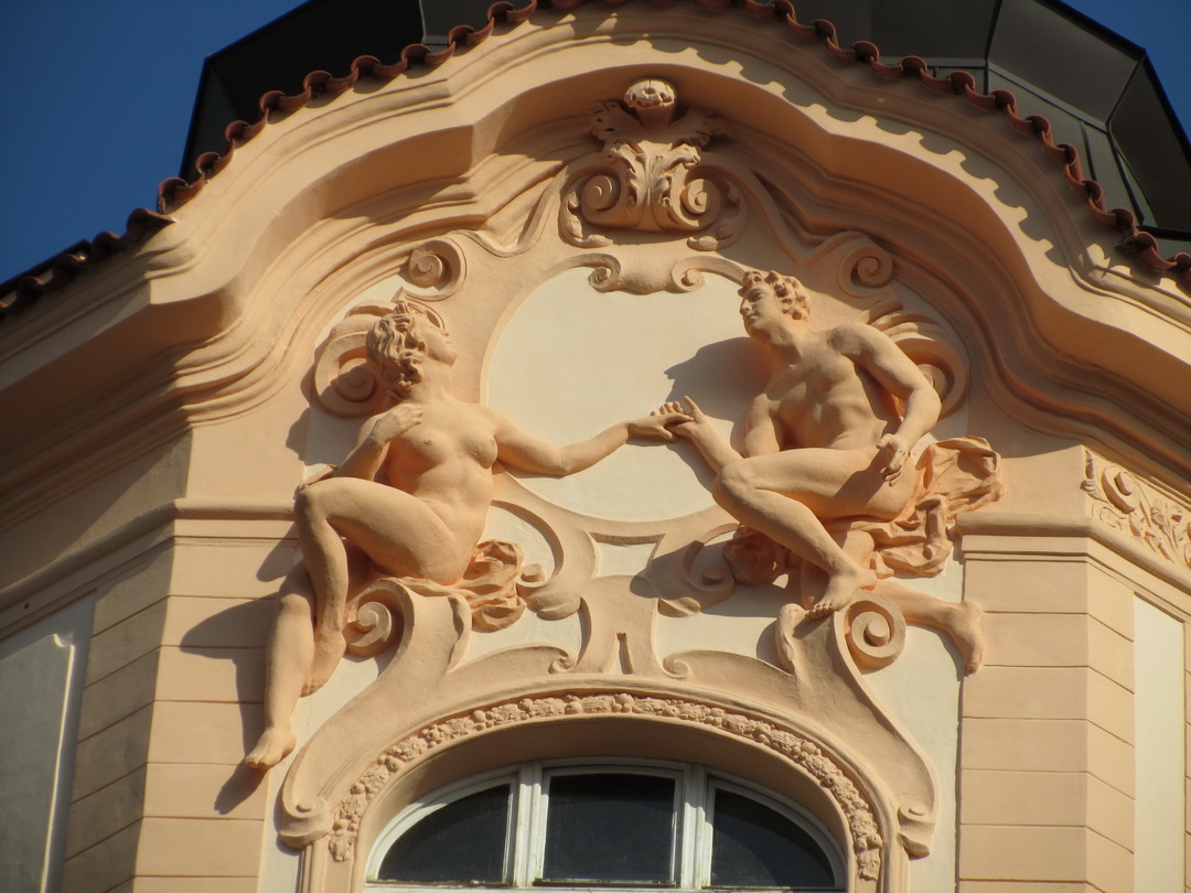 Předmět grantu: oprava a nátěr uliční fasády - 1. část (restaurování soch, oprava - omítky, štukové výzdoby, soklu)