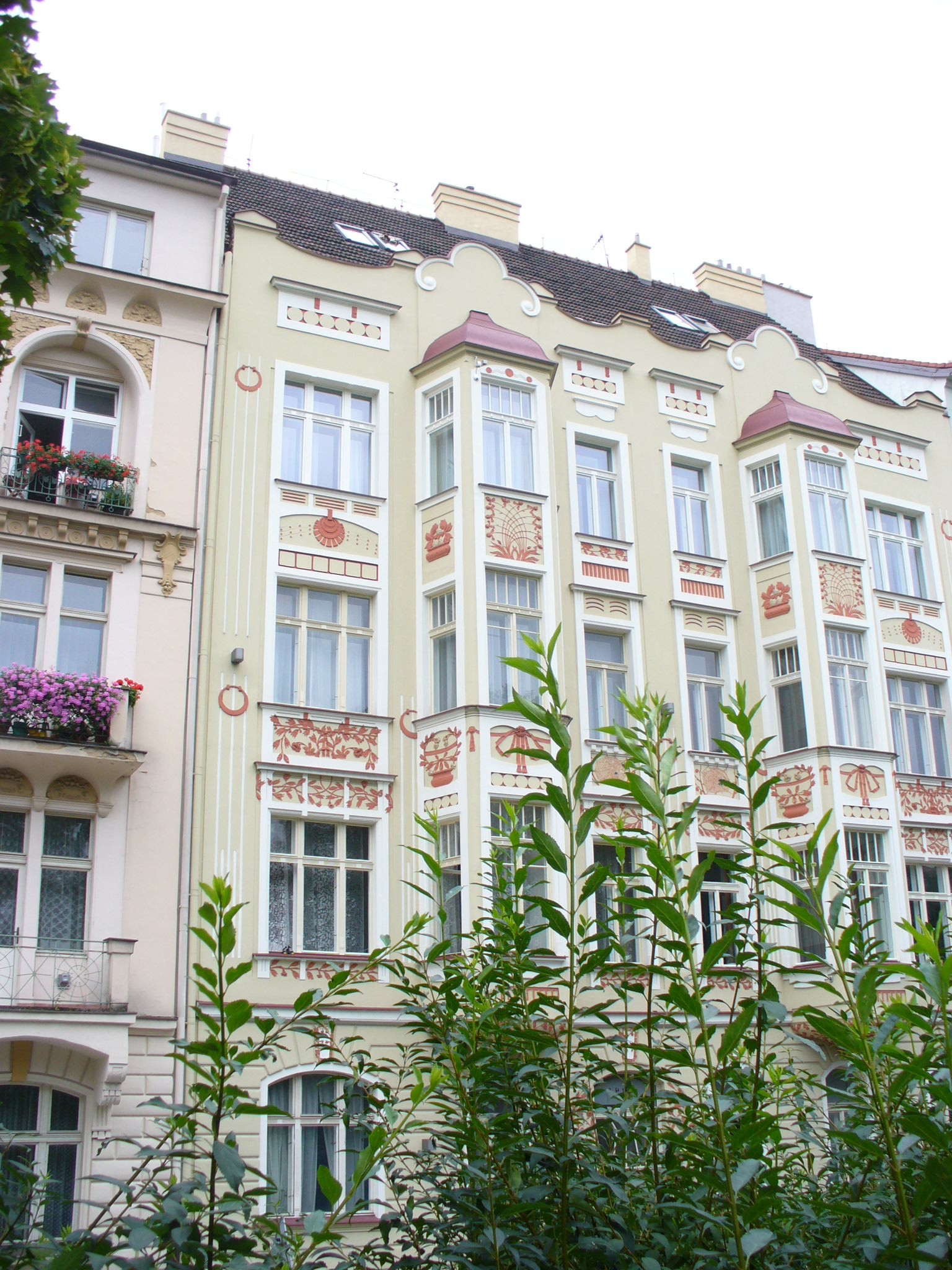 Oprava fasády domu v ulici Polská 32 na Vinohradech