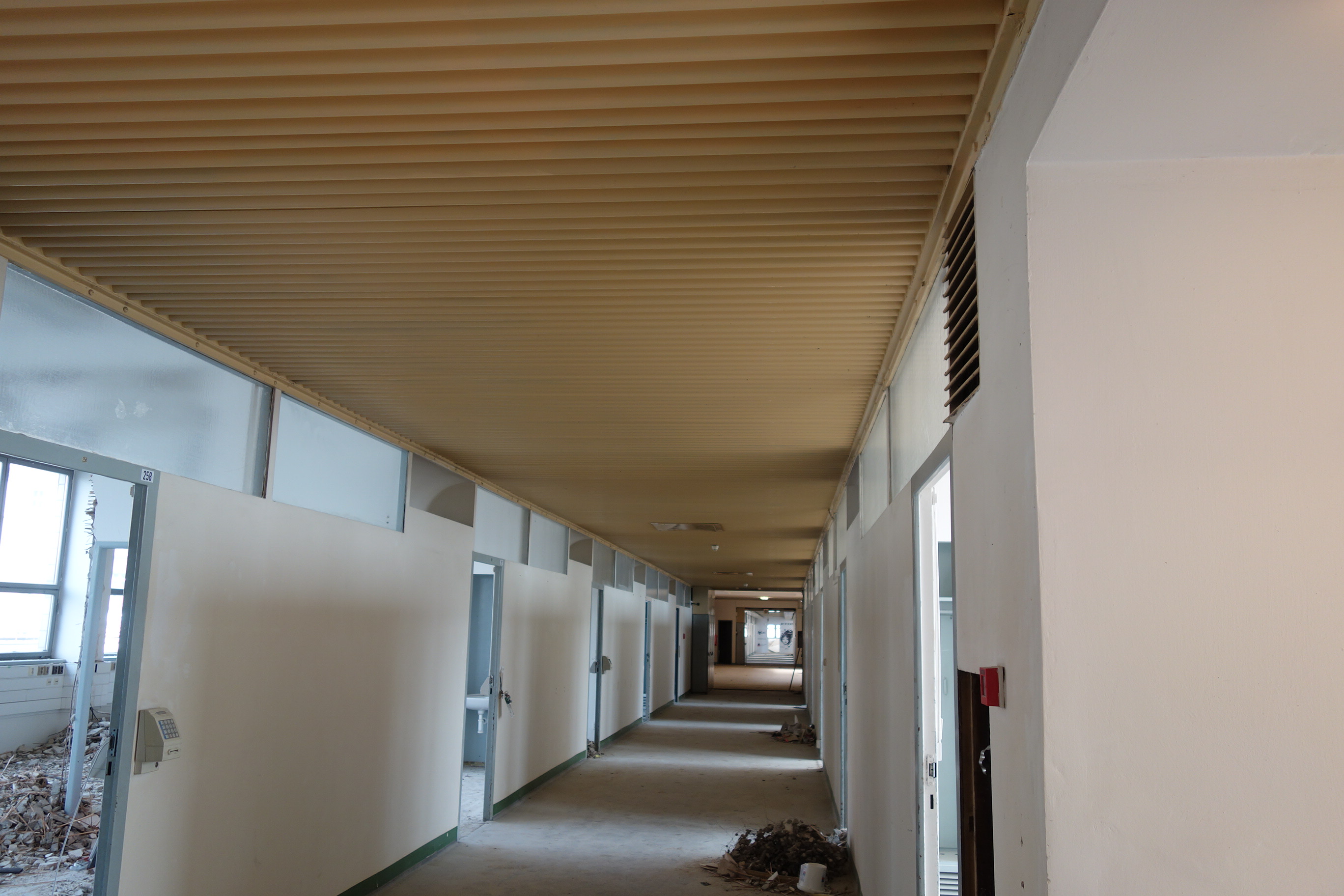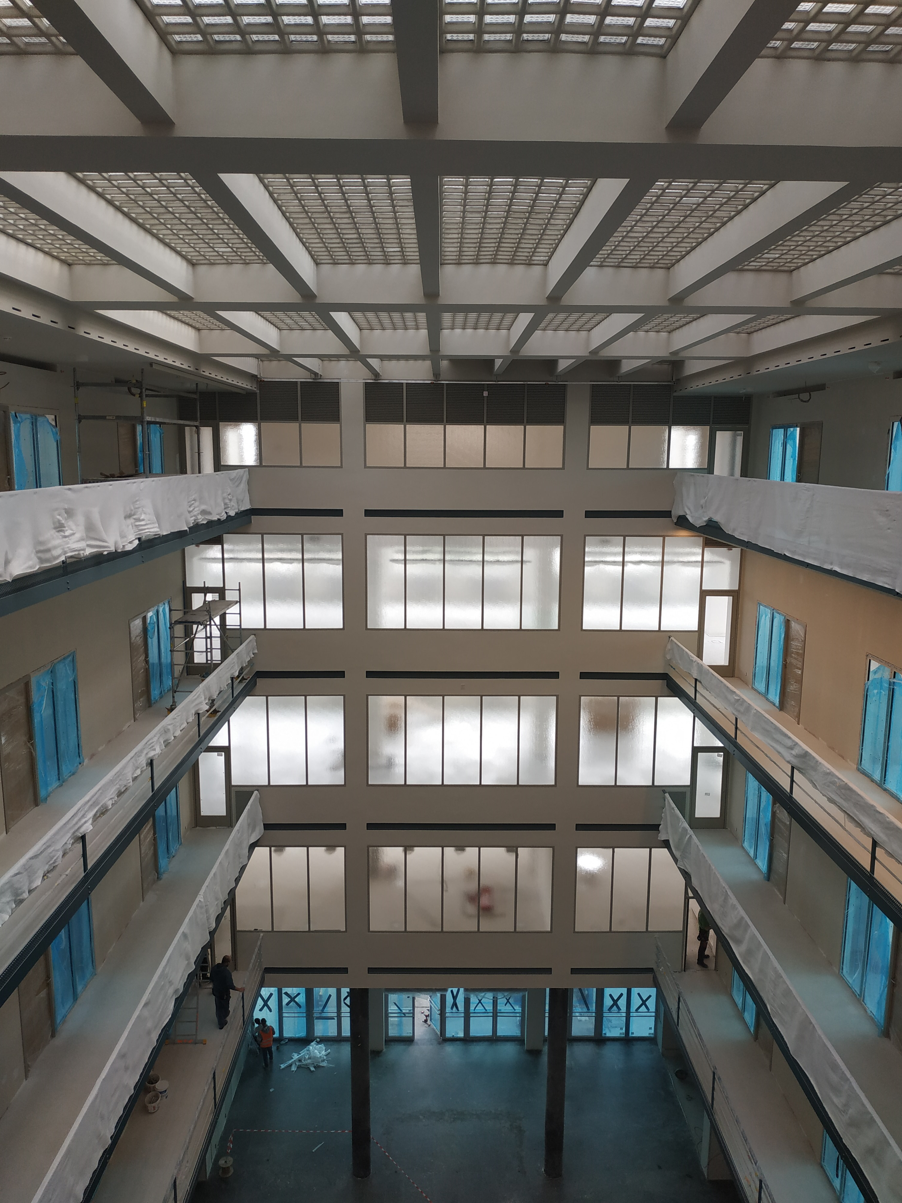 Dispoziční řešení dotčeného objektu, původně využívaného pro administrativní, kulturní a jiné účely, se vyznačuje hlavními chodbovými koridory, vybíhajícími z centrálního schodišťového prostoru, na které navazují jednotlivé kanceláře. Toto řešení z doby výstavby objektu zůstává zachováno, pouze v části objektu dochází k otevření dispozic. V současnosti se dokončuje rozsáhlá rekonstrukce objektu (mimo prostory bývalé polikliniky), která je výsledkem dlouholeté přípravy a projednávání s orgány památkové péče.