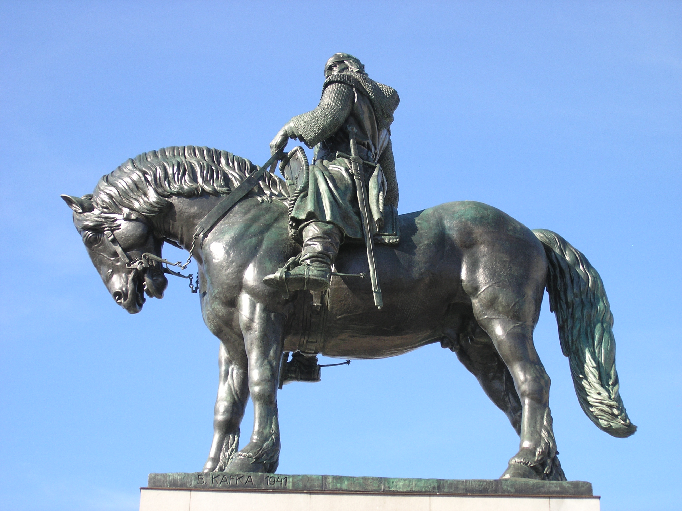 Restaurování sochy prováděli restaurátoři z buštěhradské firmy Pasířství Houska & Douda. Na základě velmi podrobného průzkumu byl vypracován restaurátorský záměr. Restaurování sochy bylo navrženo s maximálním ohledem na původní výtvarně-materiálové a konstrukční řešení. Původně se počítalo s daleko razantnějším zásahem, demontáží celé sochy. Průzkum však ukázal, že železobetonová konstrukce je v relativně dobrém stavu a není třeba ji bourat. Restaurátoři vyměnili veškerý spojovací materiál za nerezový a na doporučení statika byly přidány některé výztuže do těla koně. Některé části sochy musely být demontovány, důvodem byla výměna šroubů na všech spojích. Opraveny byly také všechny defekty bronzového pláště. Při restaurování jeho povrchu bylo důležité odstranit pokud možno všechny prvky, které zabraňují přirozenému vyvinutí patiny. Závěrečná fixace povrchu bronzového pláště byla provedena včelím voskem a následným zaleštěním. Restaurovány byly i všechny kamenné prvky pomníku včetně soklu.