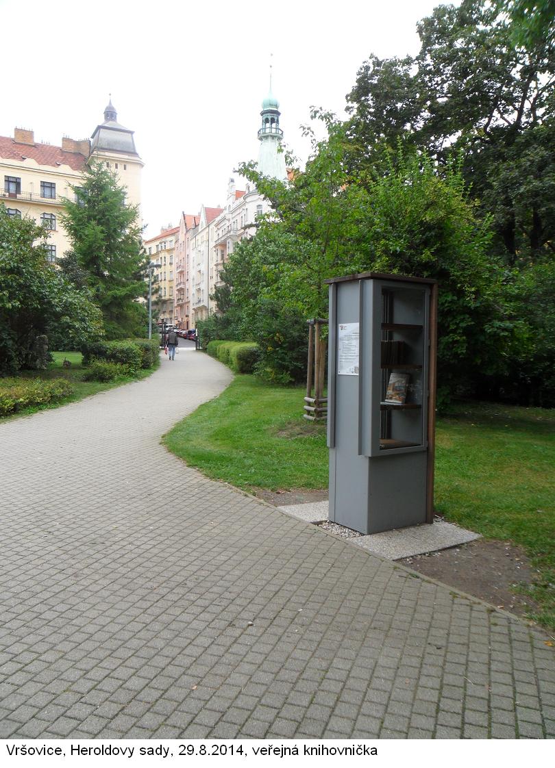 V souladu se závazným stanoviskem MHMP OPP byla umístěna v Heroldových sadech veřejná knihovna. Objekt je kovový, vysoký 2035 mm, široký 655 mm, hluboký 600 mm a otevírá se z obou stran, dvířka jsou prosklená z bezpečnostního skla, opláštění skřínky jez lepených desek odolného tropického dřeva. Prvek veřejné knihovničky je situován v blízkosti altánu s piánem. Tyto prvky dotvářejí vhodným způsobem prostředí parku.