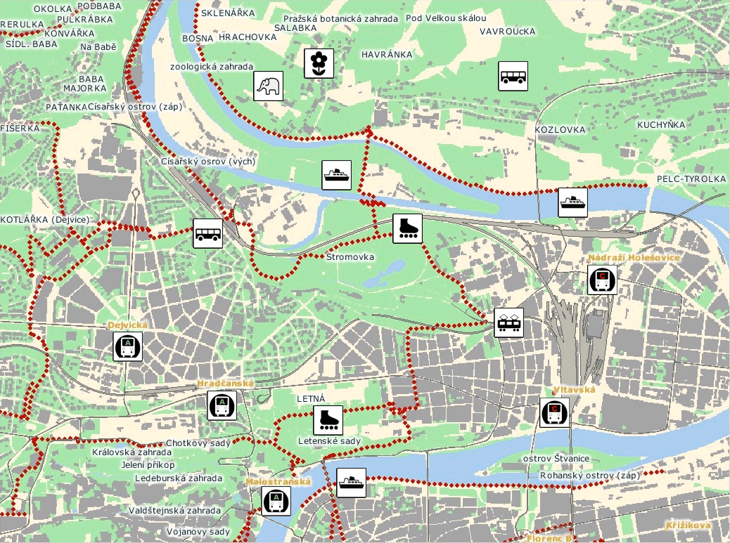 zdePohyb psů ve Stromovce-mapa