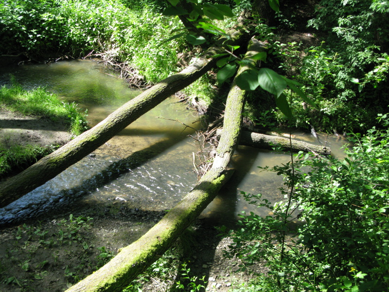 Pitkovický potok před ústím do Botiče Nedaleko od můstku a infotabule číslo 8 se Pitkovický potok vlévá do Botiče..
