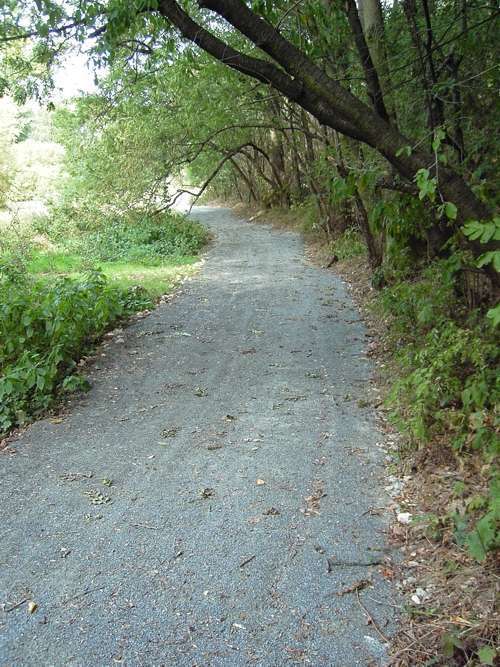 Další cesta vede malou uličkou mezi domy číslo 25 a 26, nalevo od úřadu městské části. Ulička končí žluto zelenou závoru a dále pokračuje jako pohodlná cesta po louce po pravém břehu Pitkovického potoka.