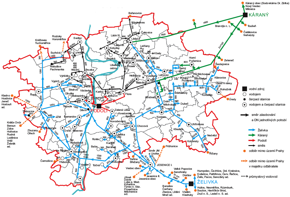 Praha byla v roce 2006 zásobovaná po dobu 10-ti měsíců ze dvou úpraven pitné vody (Želivka, Káraný), v průběhu listopadu a prosince ze tří úpraven pitné vody – Želivka, Káraný, Podolí.