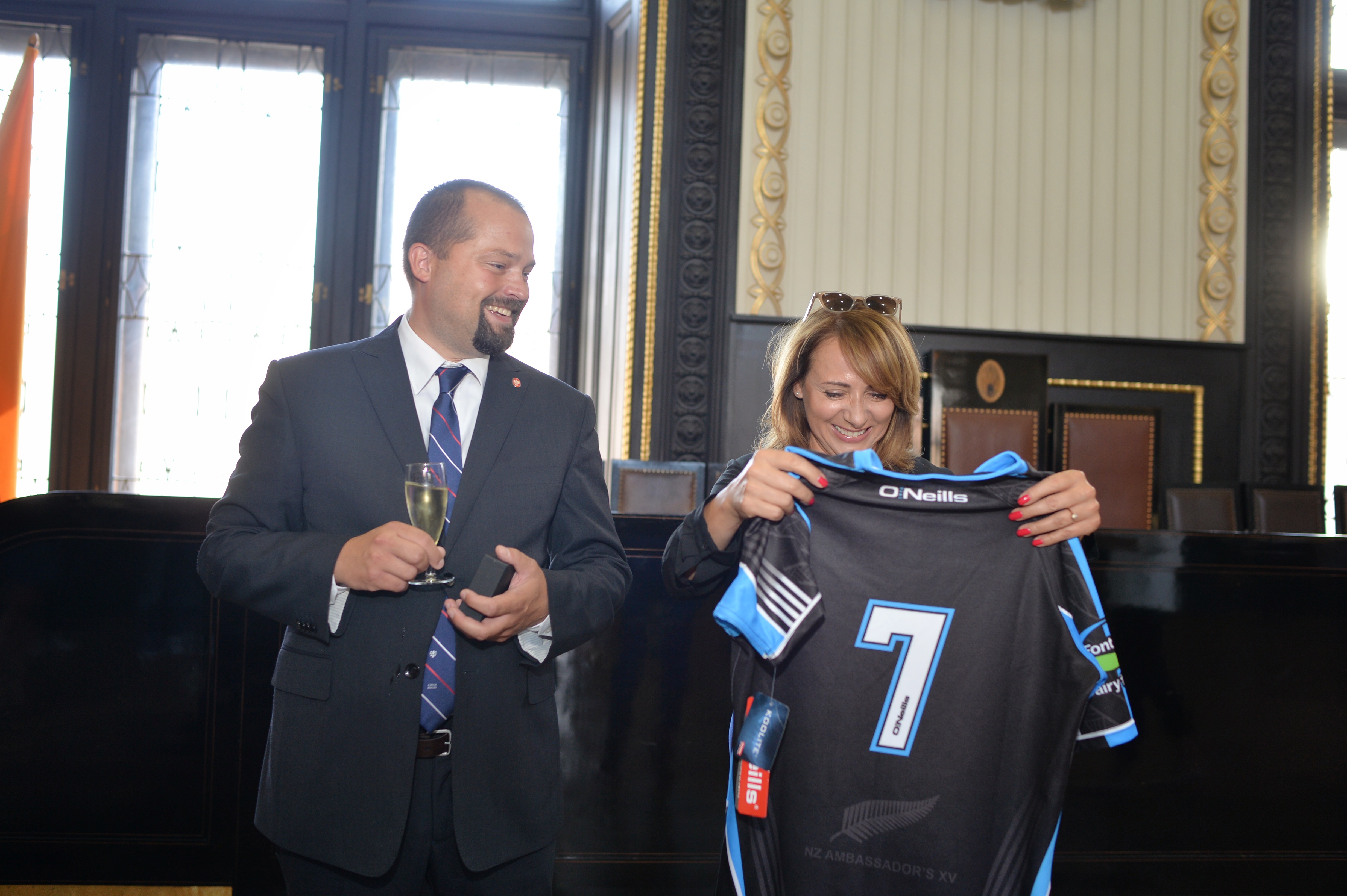 14.7.2023 — Přijetí hráčů ragby New Zealand Ambassador´s XV a předvedení tradičního bojového tance Haka