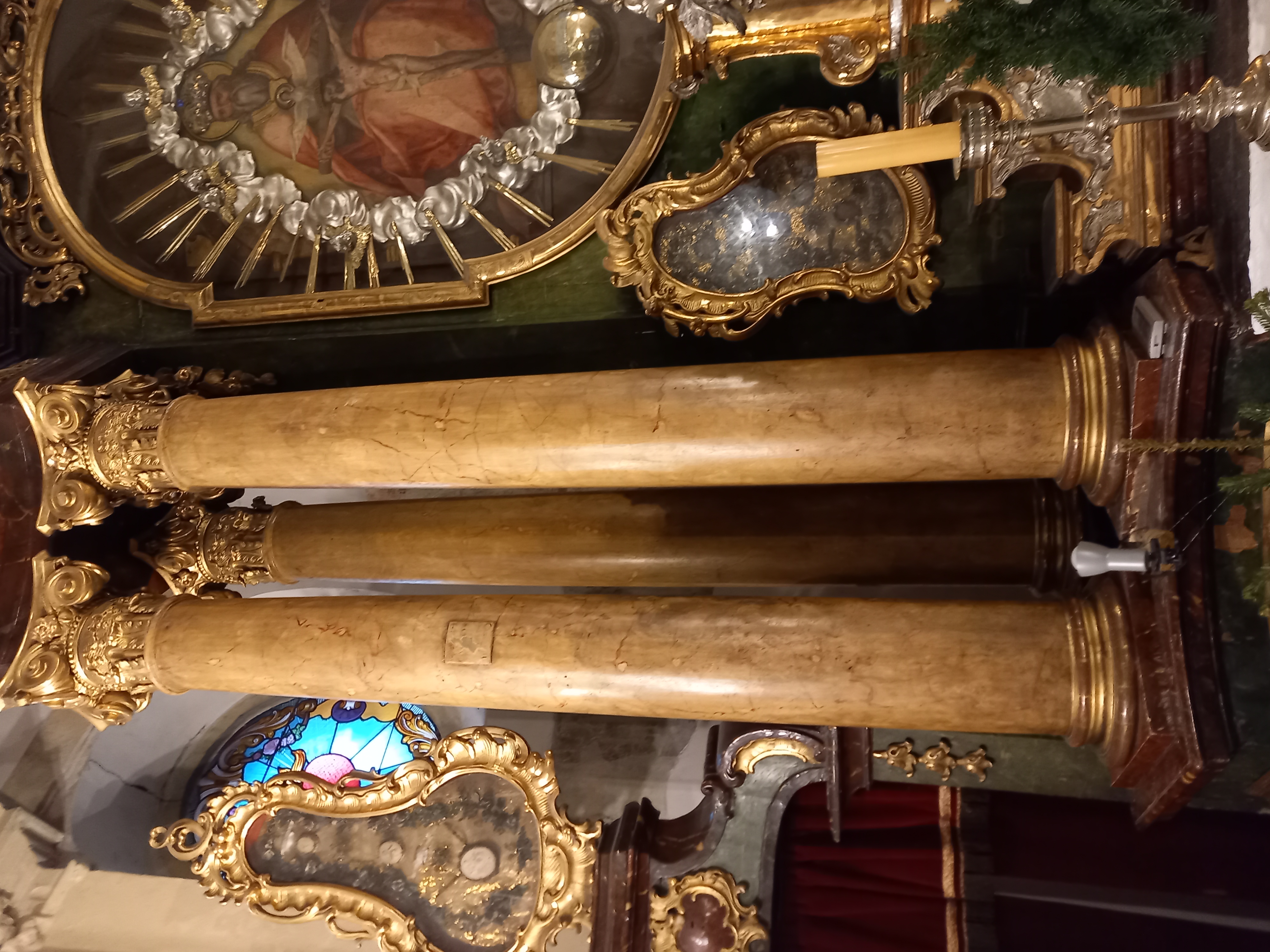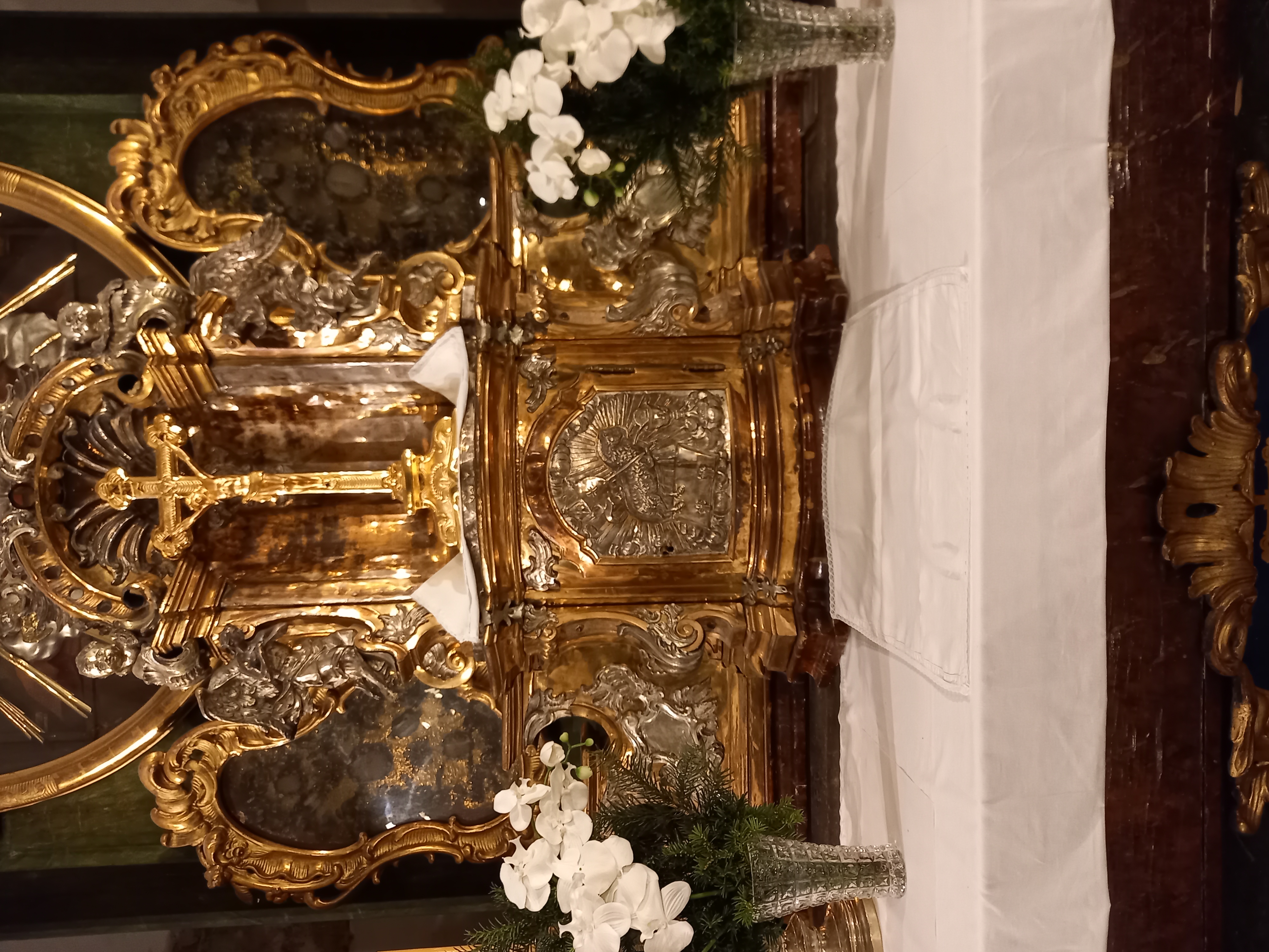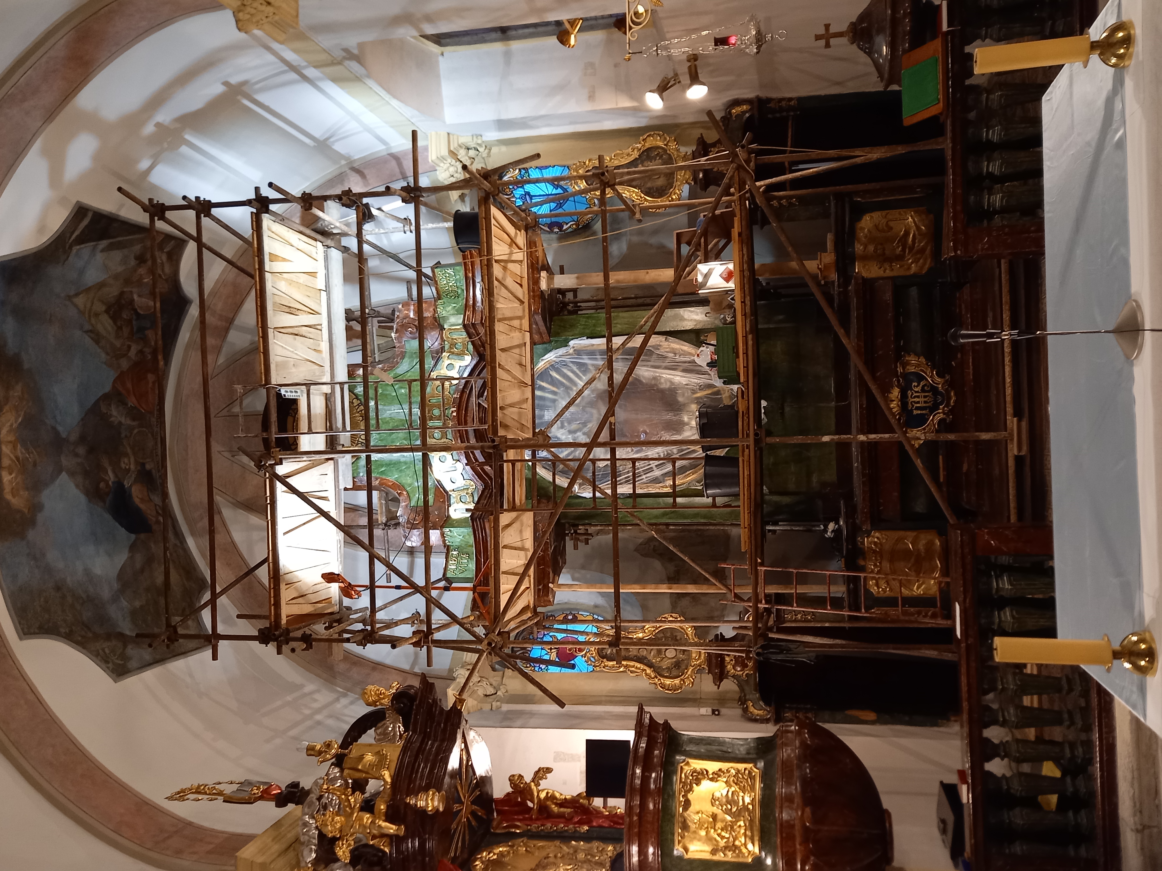 Předmět dotace: restaurování hlavního oltáře, I. etapa - prosklený zlacený rám obrazu, sloupy, hlavice sloupů, mensa (bez kartuše), retabulum (bez nástavce, bez zlacených reliéfů)