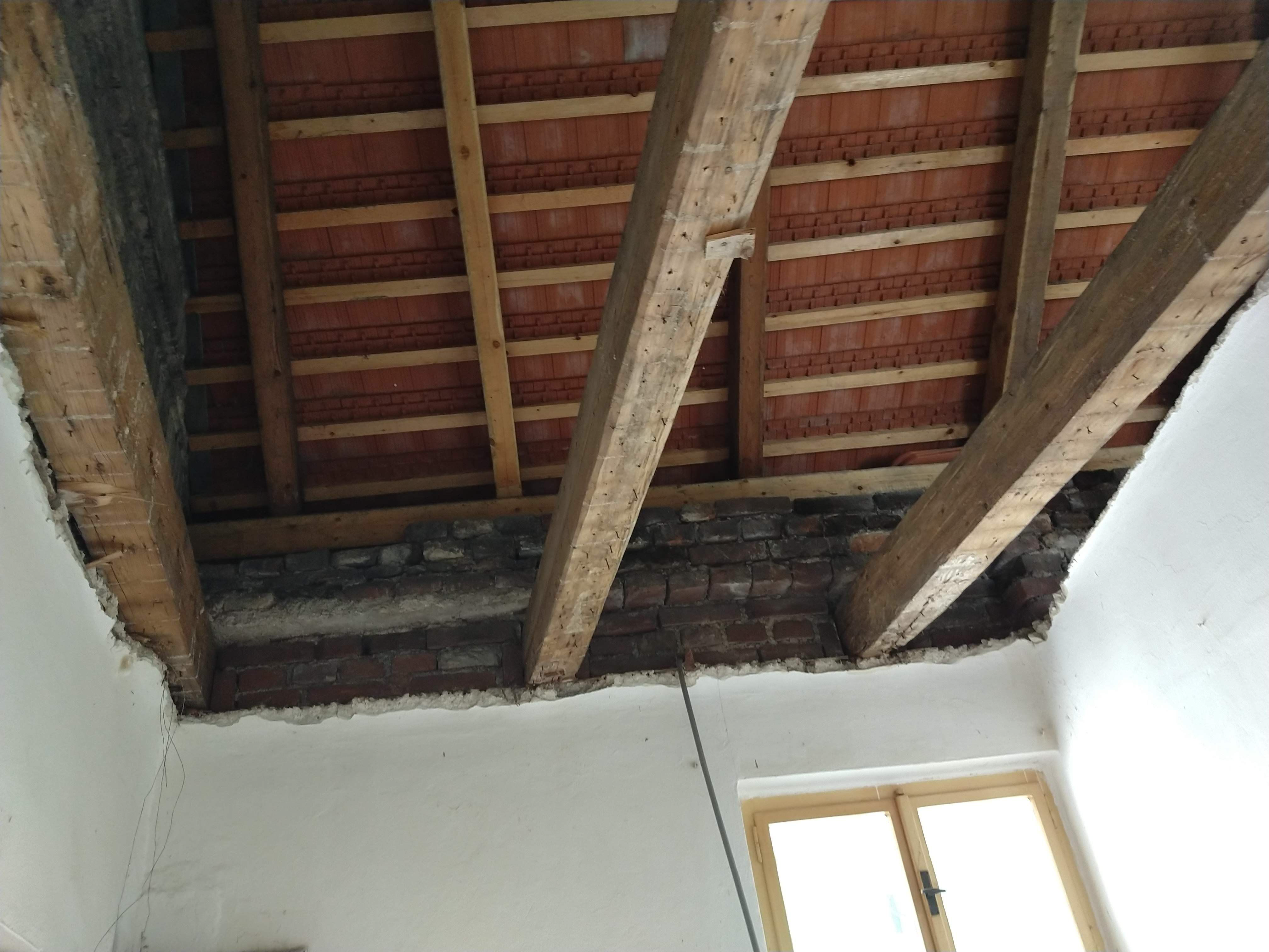 Předmět dotace: zajištění statiky obvodové zdi, oprava krovu v úseku H