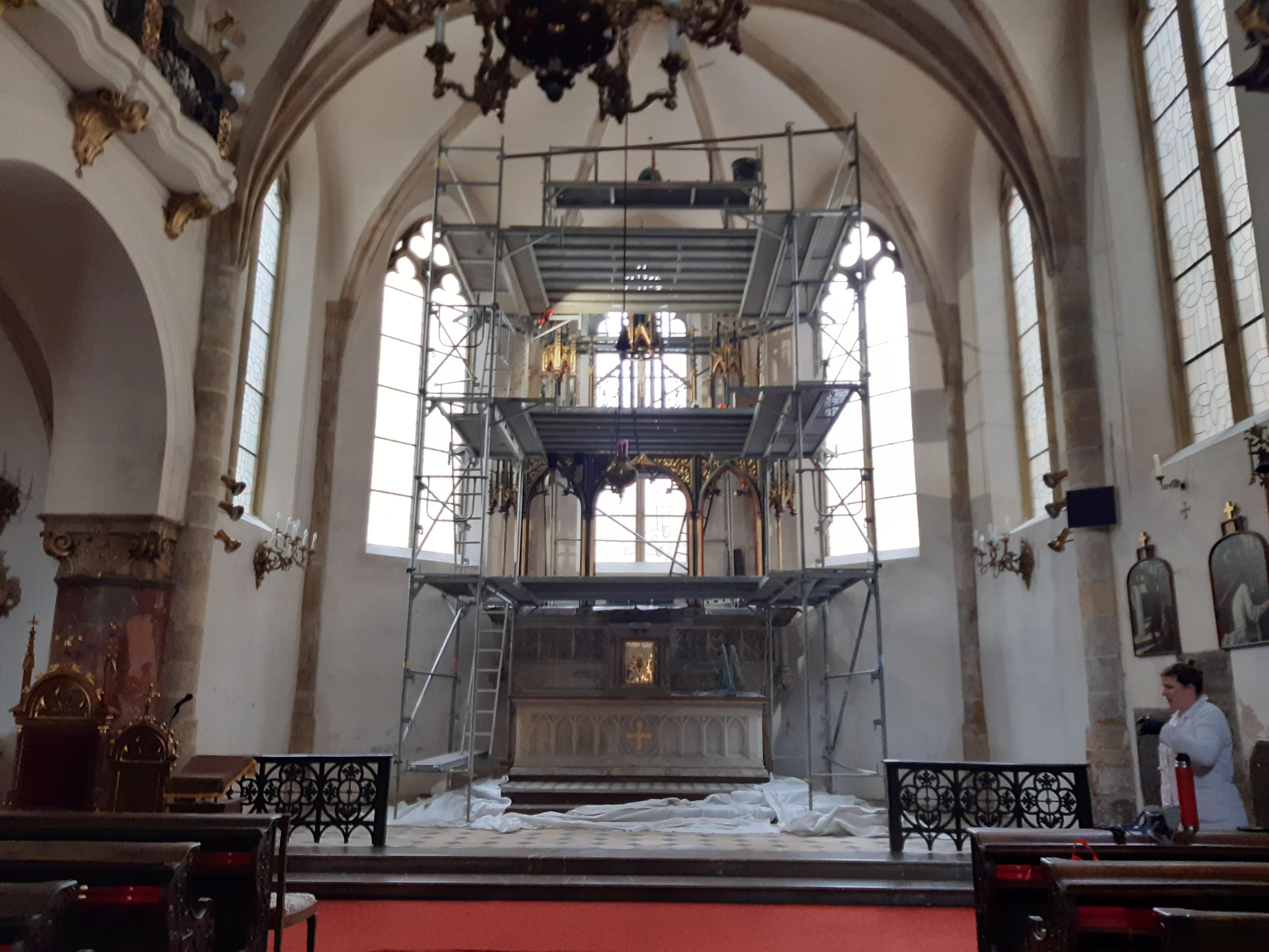 Předmět dotace: restaurování hlavního oltáře, plastik a dořezeb - 3. etapa